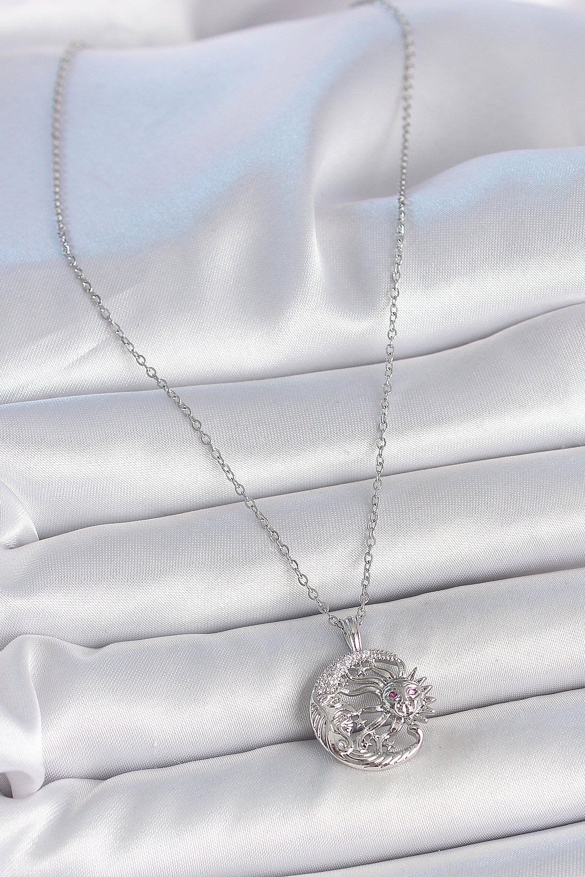 316L Steel Silver Color Chain Moon Sun Model Zircon Stone Detail Women's Necklace
