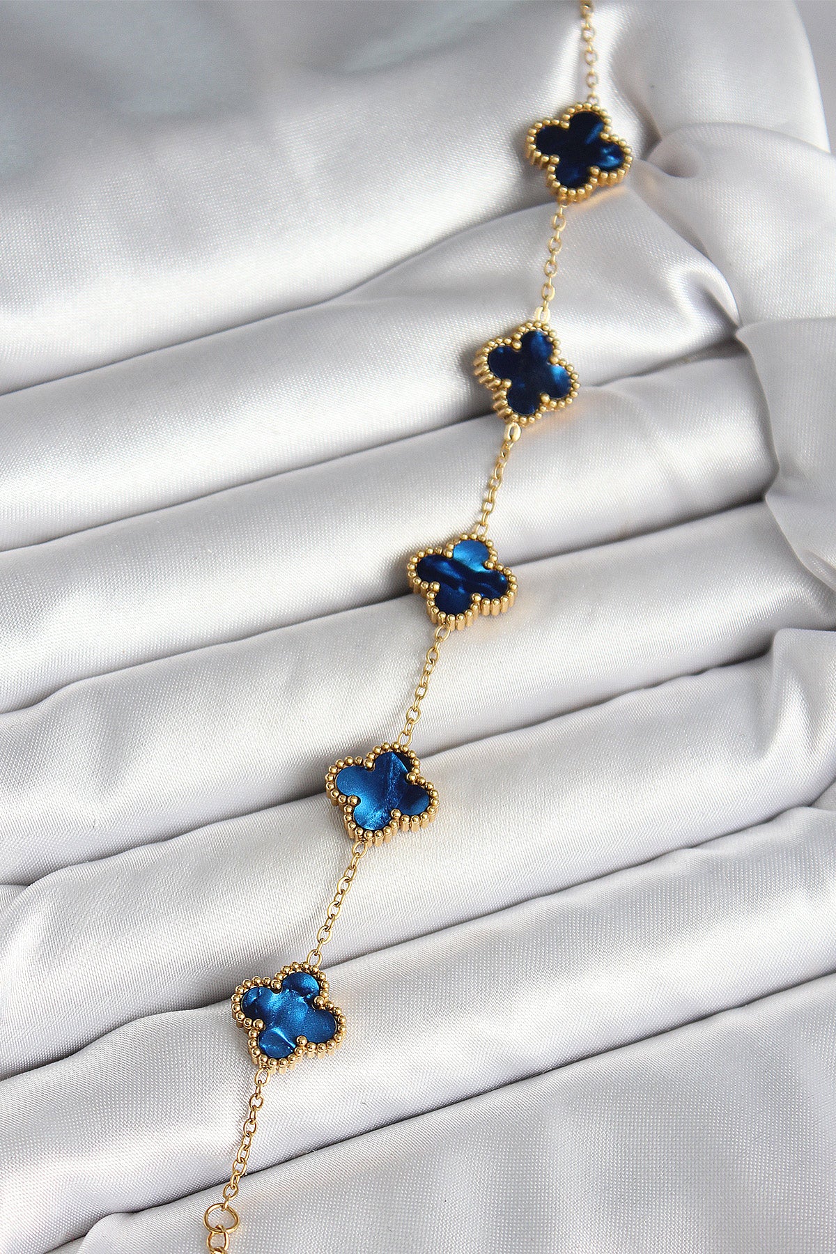 316L Steel Mother-of-Pearl Navy Blue Gold Color Clover Women's Bracelet