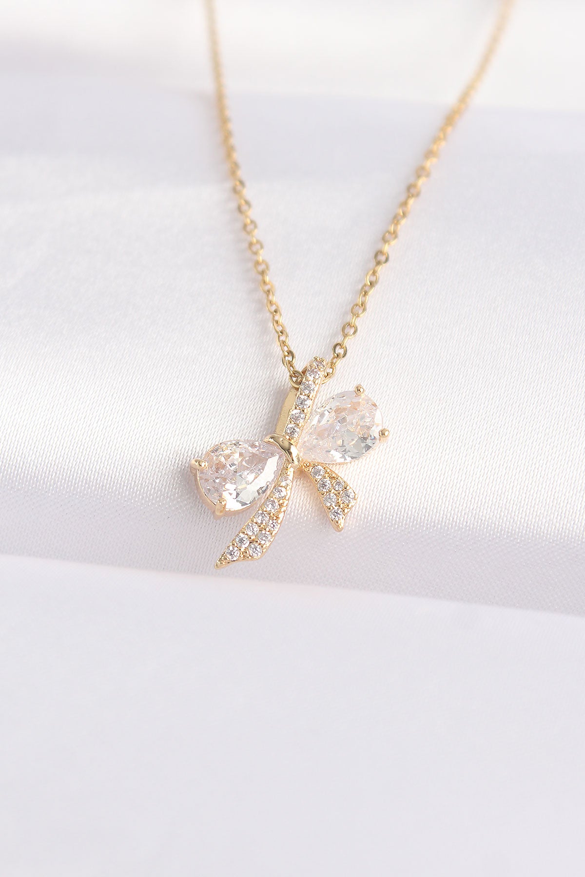 316L Steel Chain Gold Color Zircon Stone Bow Necklace