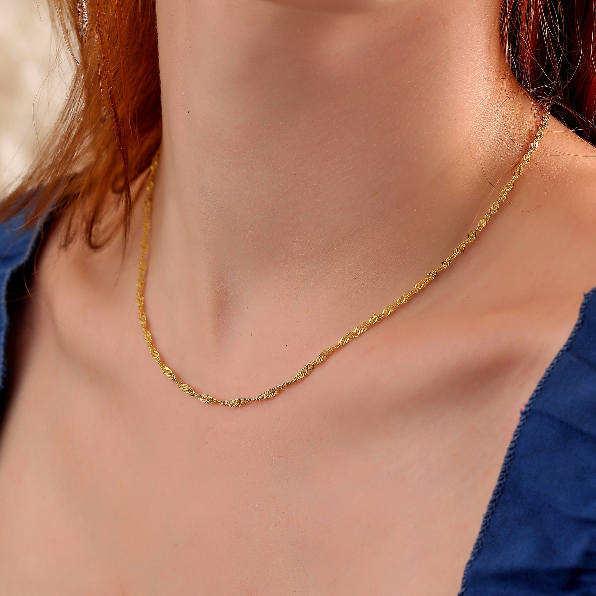 Dainty 14K Gold Plated Chain Necklace: Twist Rope, Paperclip, Snake & More