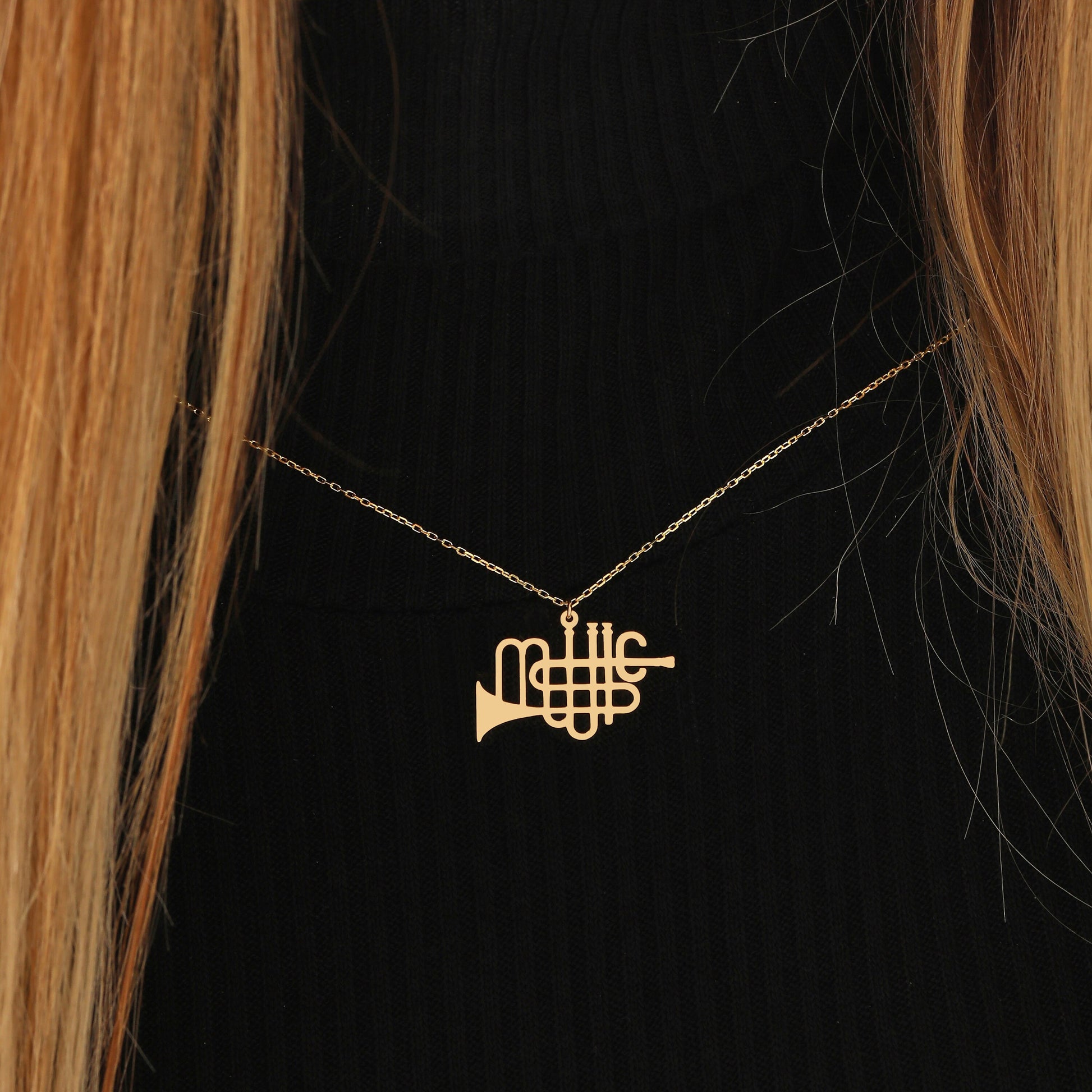 Dainty Trumpet Necklace: Sterling Silver or Solid Gold Musical Jewelry