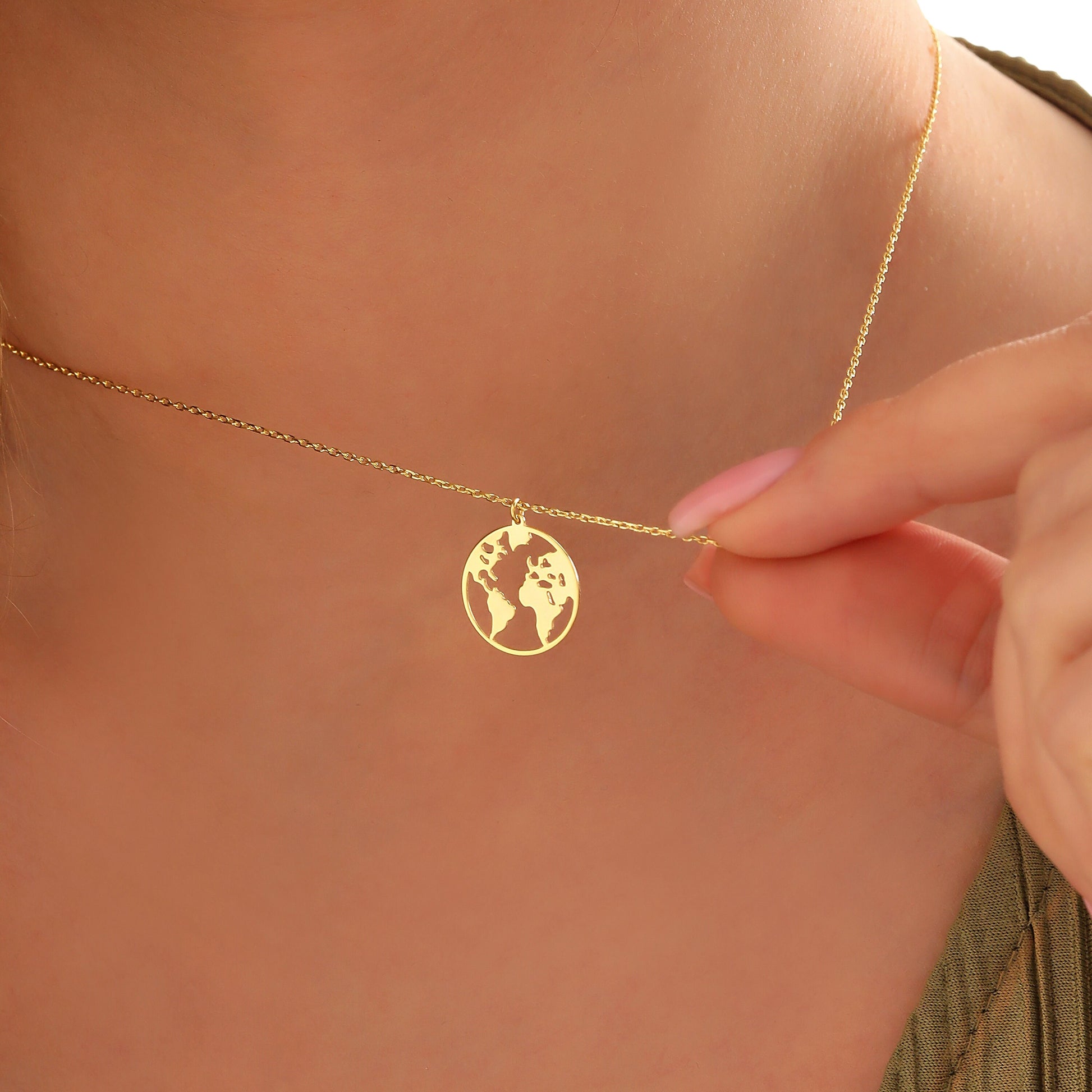 Gold or Silver World Necklace, Minimalist World Map Jewelry, Tiny Globe Pendant, Charm Travel Gift, Handmade Jewelry, Christmas Gifts