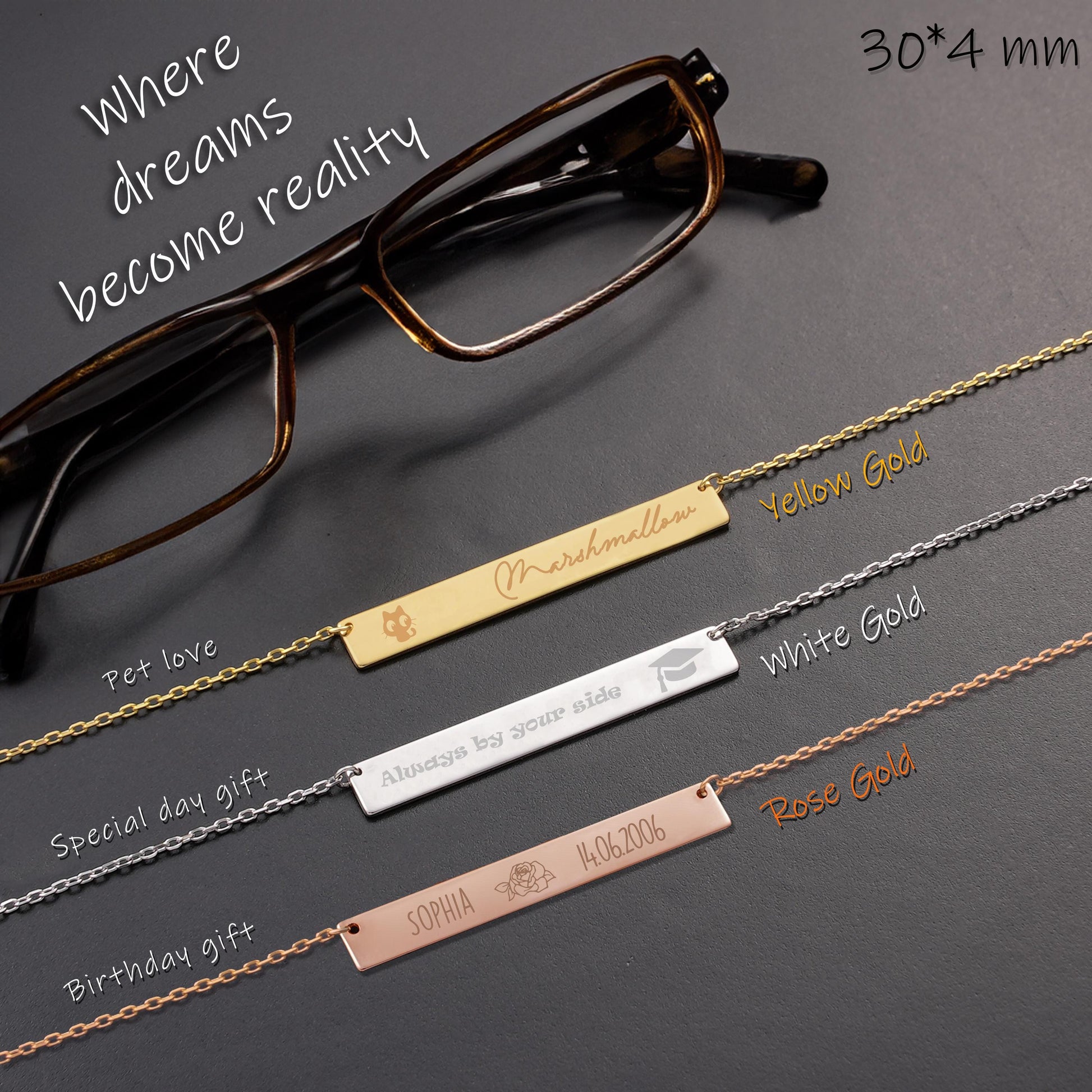 Silver or Gold Personalized Bar Necklace, Dainty Nameplate Necklace, Minimalist Name Jewelry, Custom Engraved Pendant, Christmas Gift
