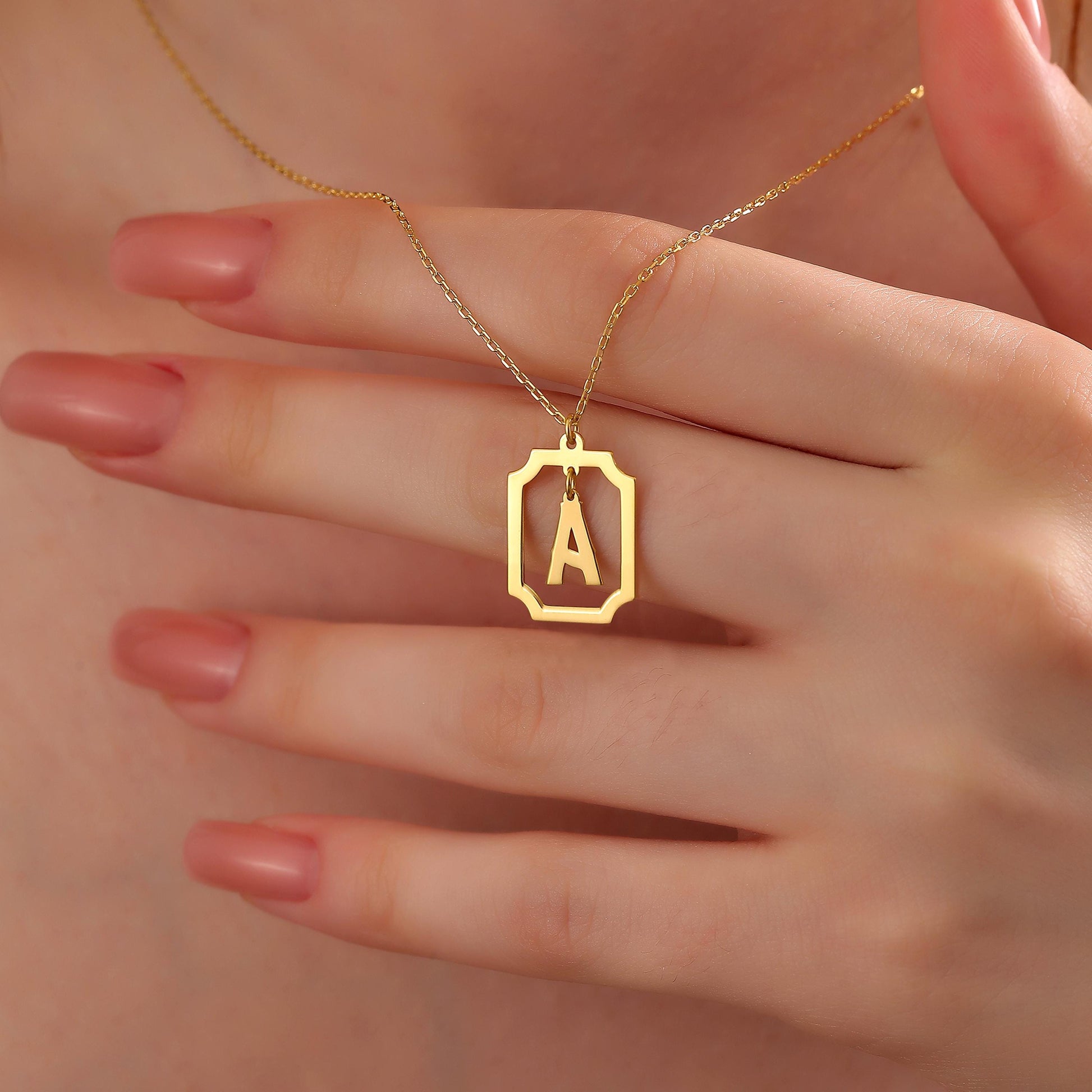 Personalized Initial Pendant Necklace: Sterling Silver Framed Monogram