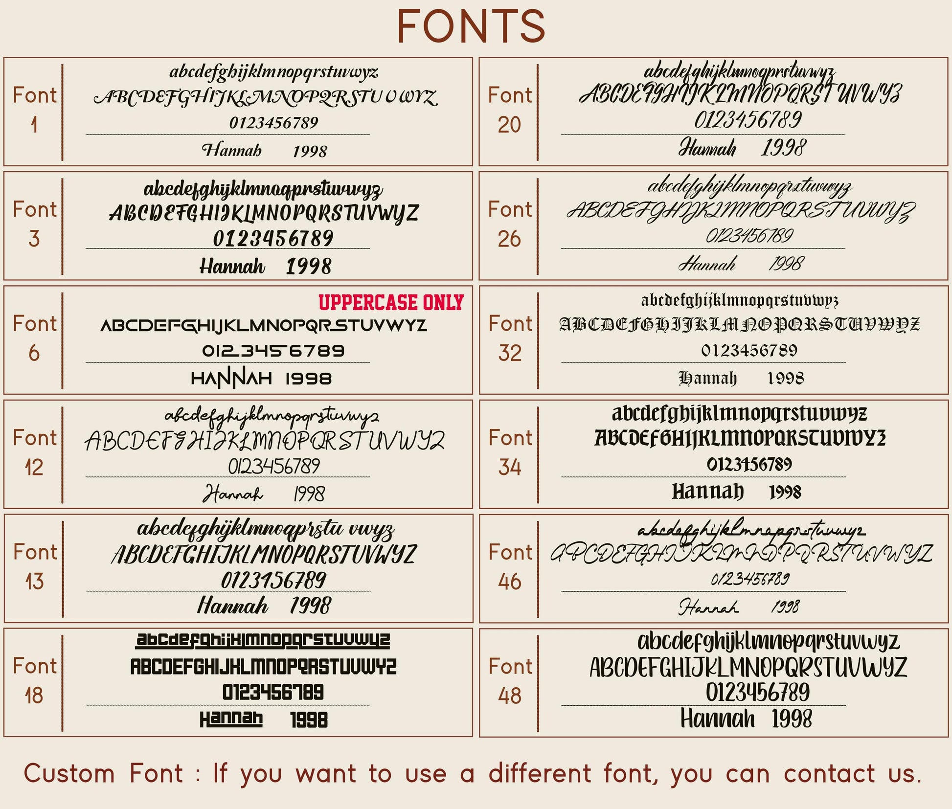 · STEP 3: Please use the 'PERSONALIZATION BOX' to let us know the FONT and your personalization. The default font is ''1''