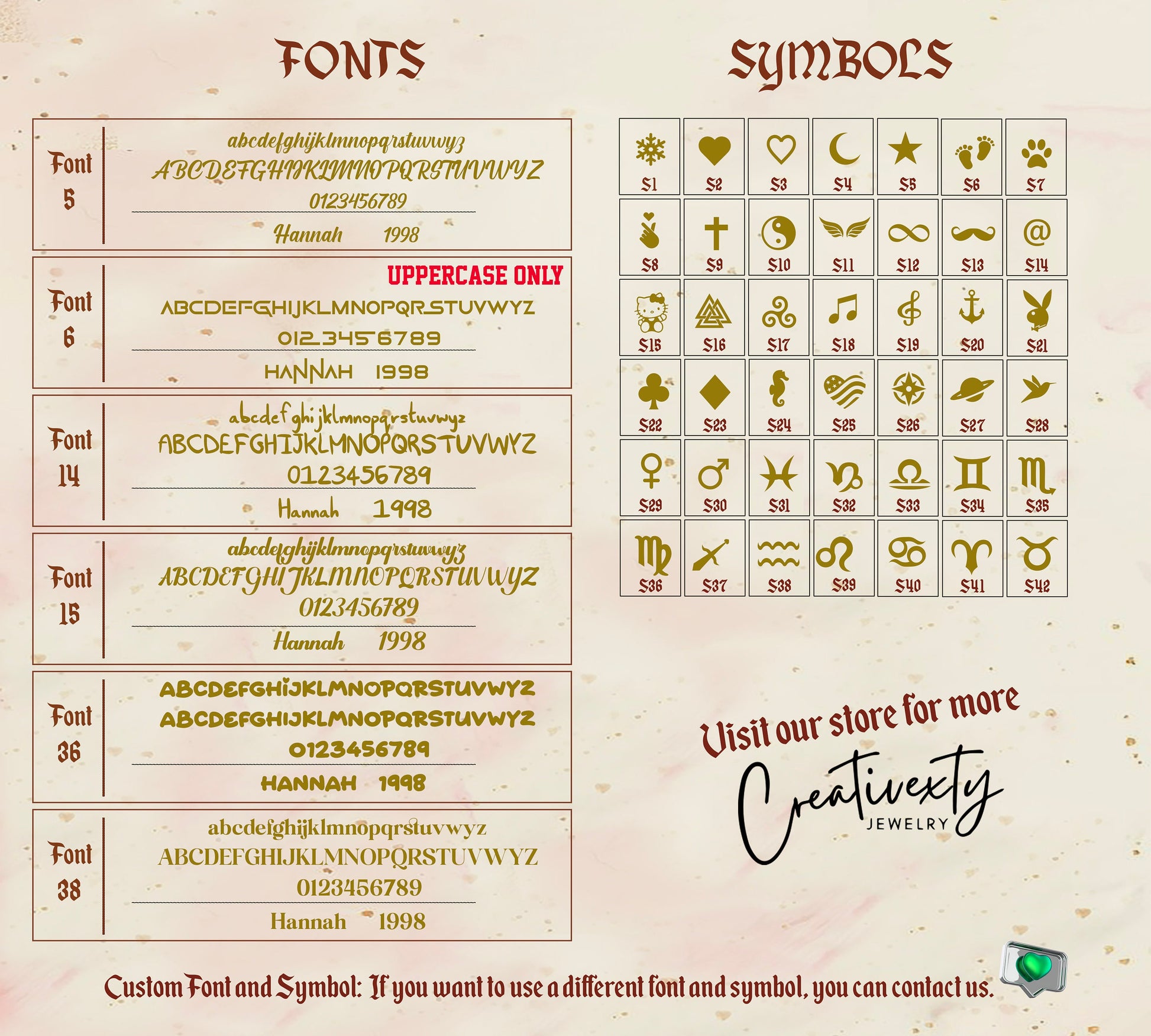 · STEP 3: Please use the 'PERSONALIZATION BOX' to let us know the FONT and your personalization. The default font is ''5''