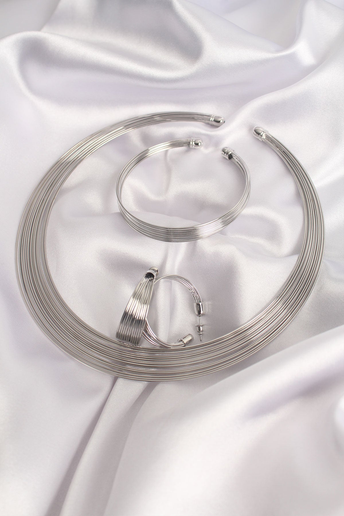 Brass Silver Color Necklace Earring Bracelet Set