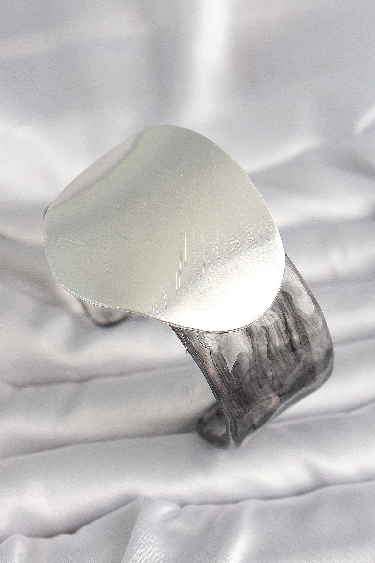 Black Marble Pattern Acrylic Plastic Silver Plate Model Vintage Women's Bracelet