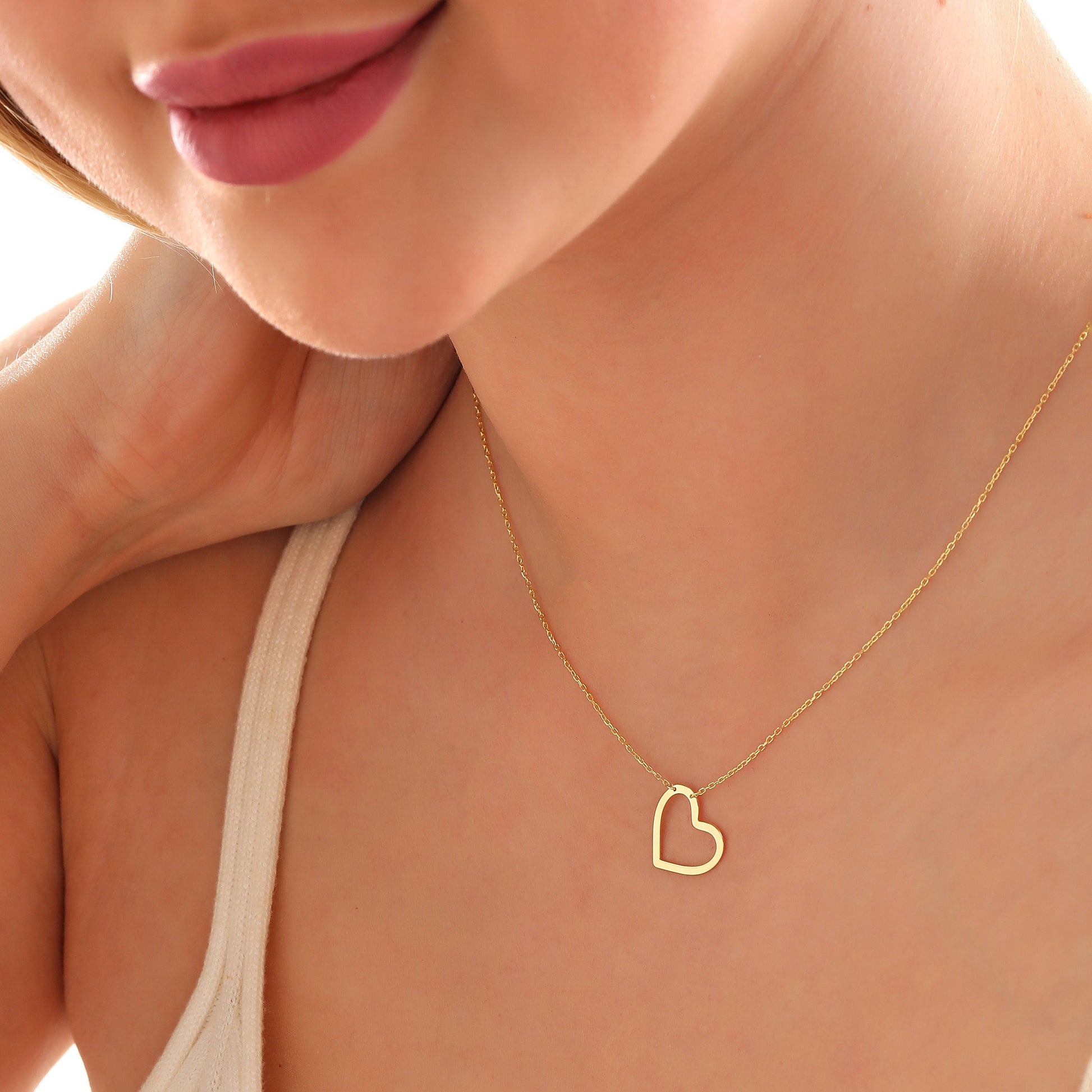 Gold or Silver Heart Necklace, Minimalist Heart Jewelry, Charm Love Pendant, Dainty Heart Pendant, Christmas Gift for Her, Gifts for Women