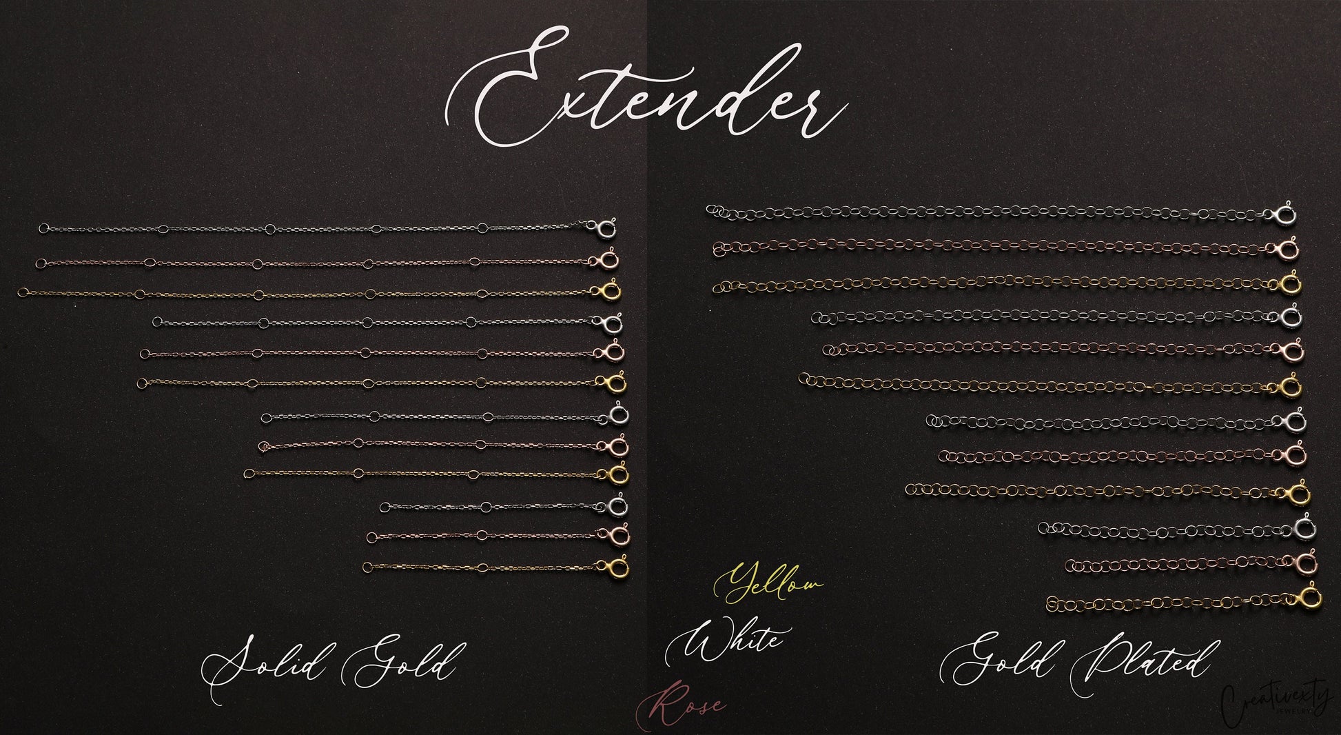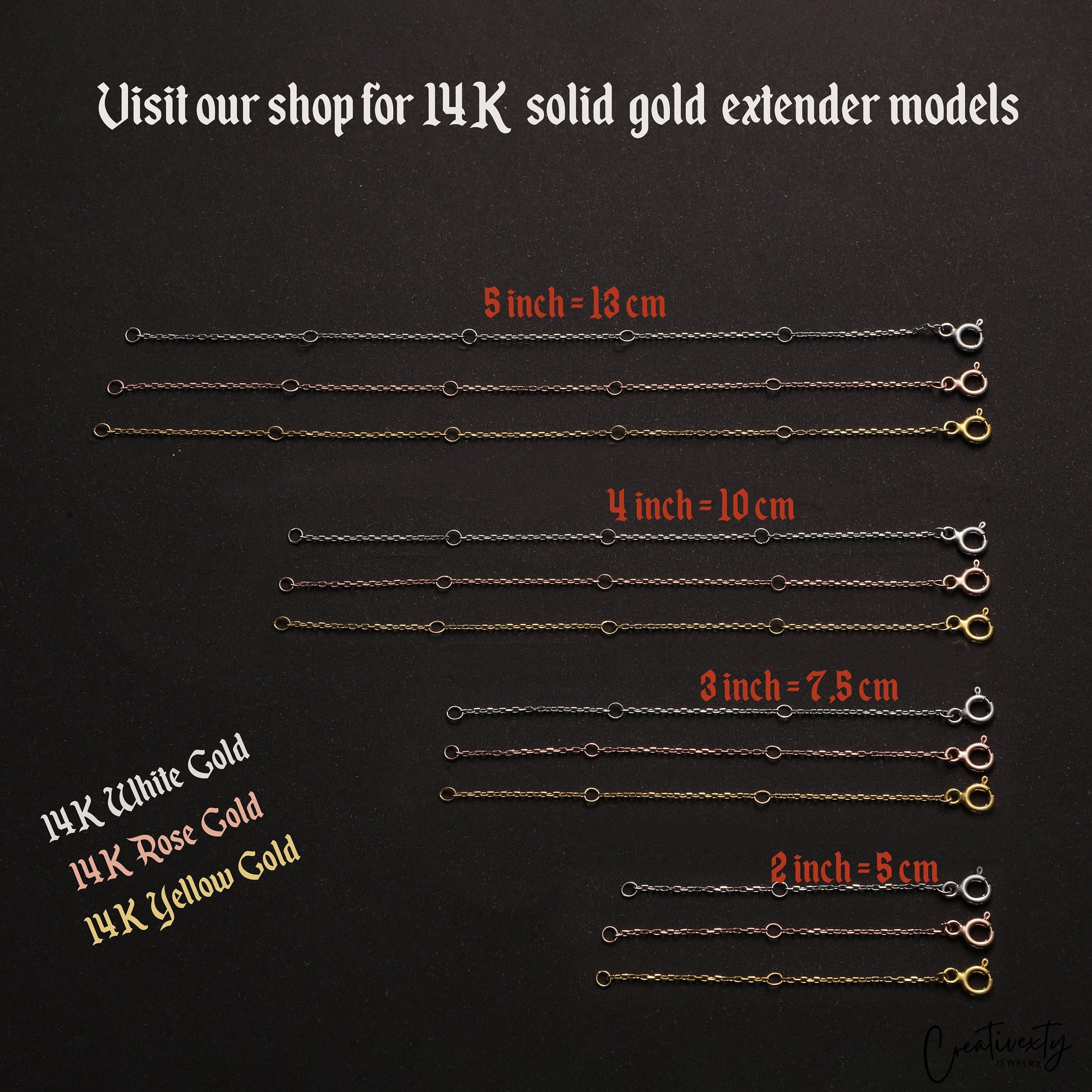 Sterling Silver Necklace Extender: Rose, White, Yellow Gold Chain Prolonger