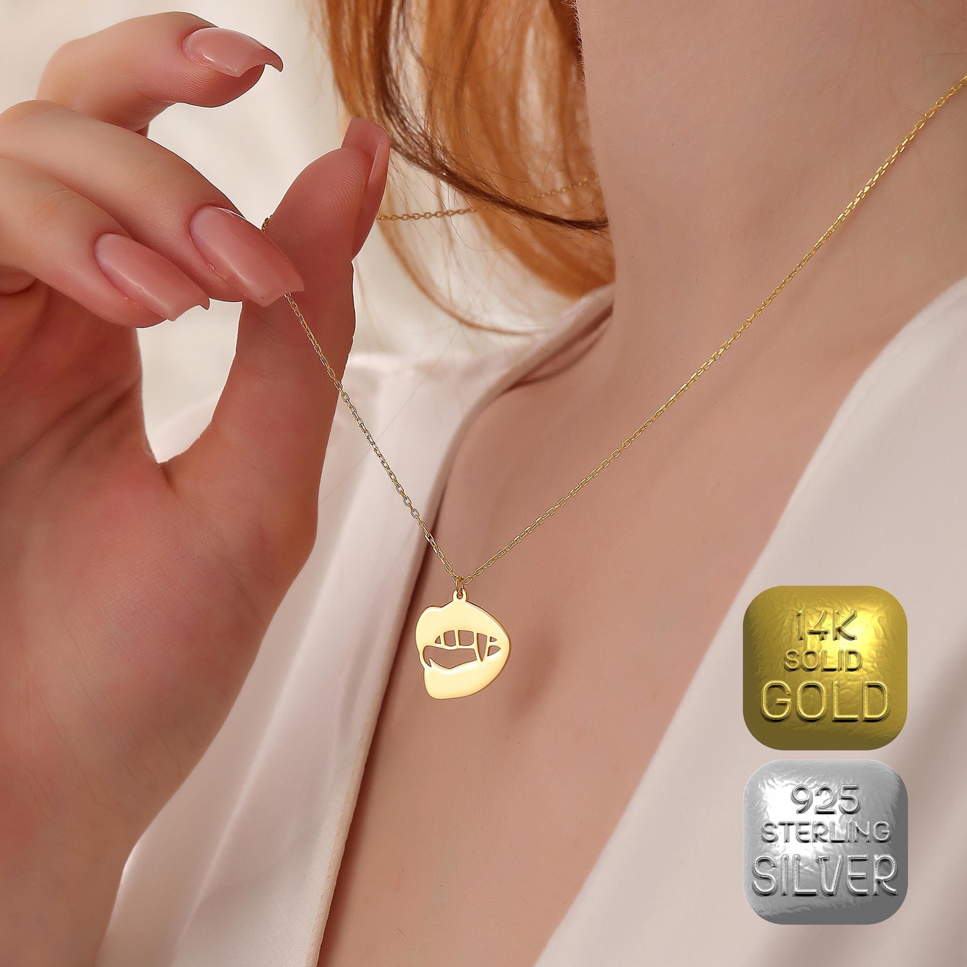 Vampire Teeth Necklace: Sterling Silver or 14K Gold, Gothic Halloween Jewelry
