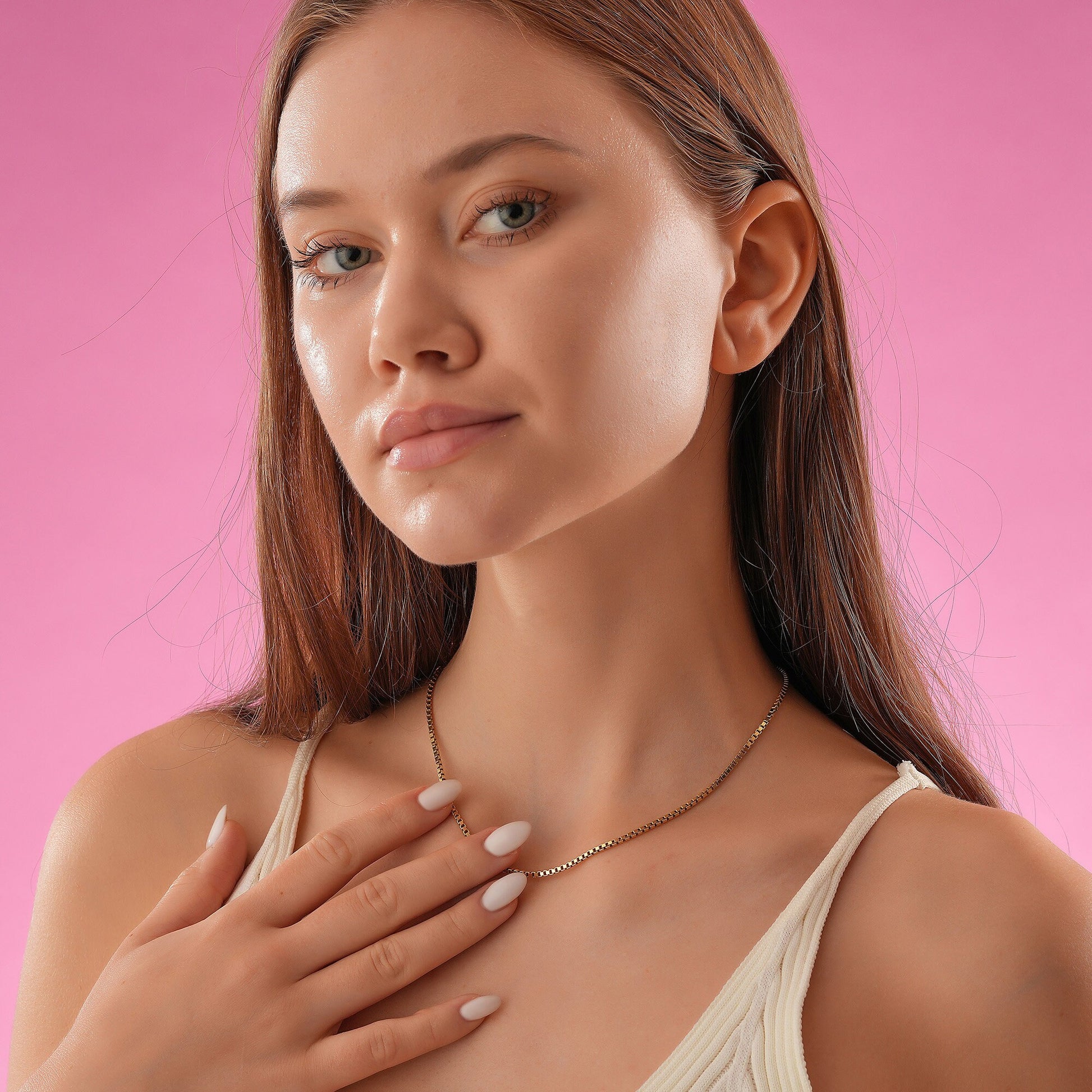 · Herringbone Chain: A delicate and unique herringbone pattern that creates a modern and attractive style.