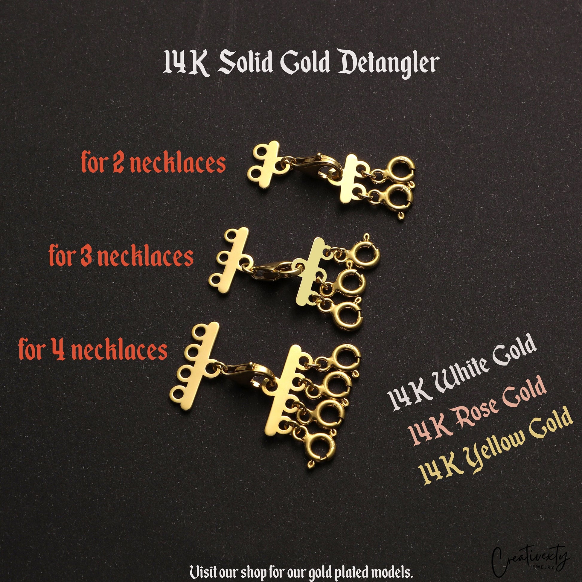 14K Solid Gold Necklace Detangler Clasp: Layered Chain Organizer