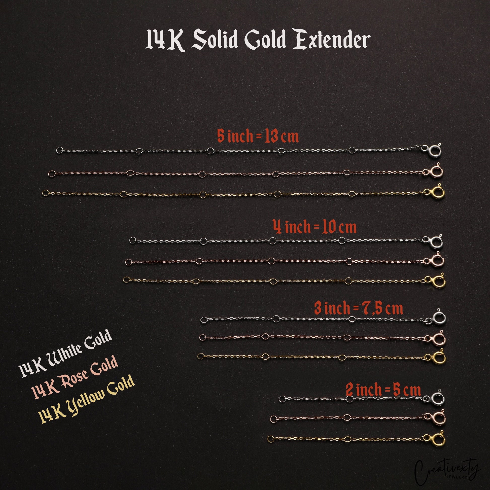 14K Solid Gold Necklace Extender: Yellow, White, Rose Gold