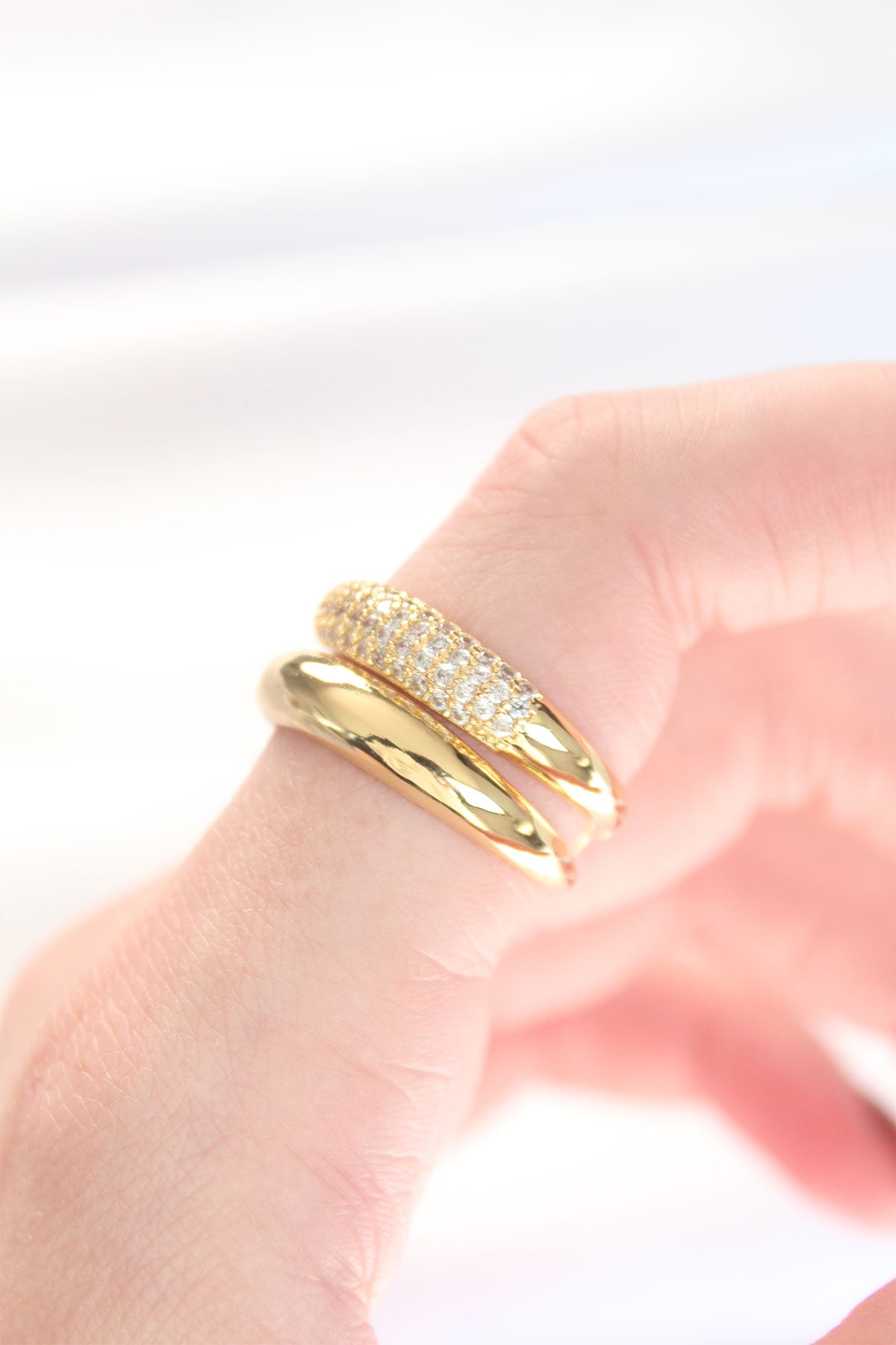 2li Görünümlü Zirkon Taşlı Gold Renk Ayarlanabilir Bombe Yüzük