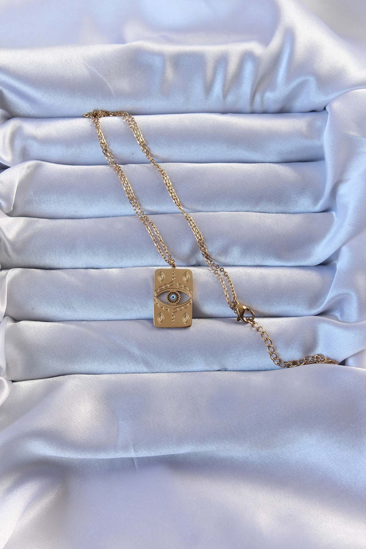 316L Altın Renk İşlemeli Nazarlı Vintage Kolye