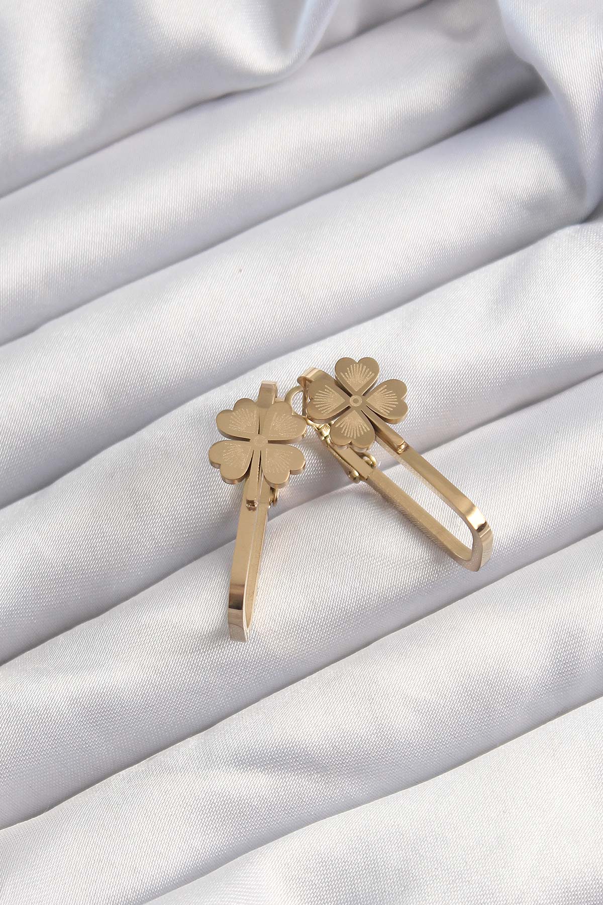 316L Çelik Altın Renk Geometrik Yonca Model Küpe