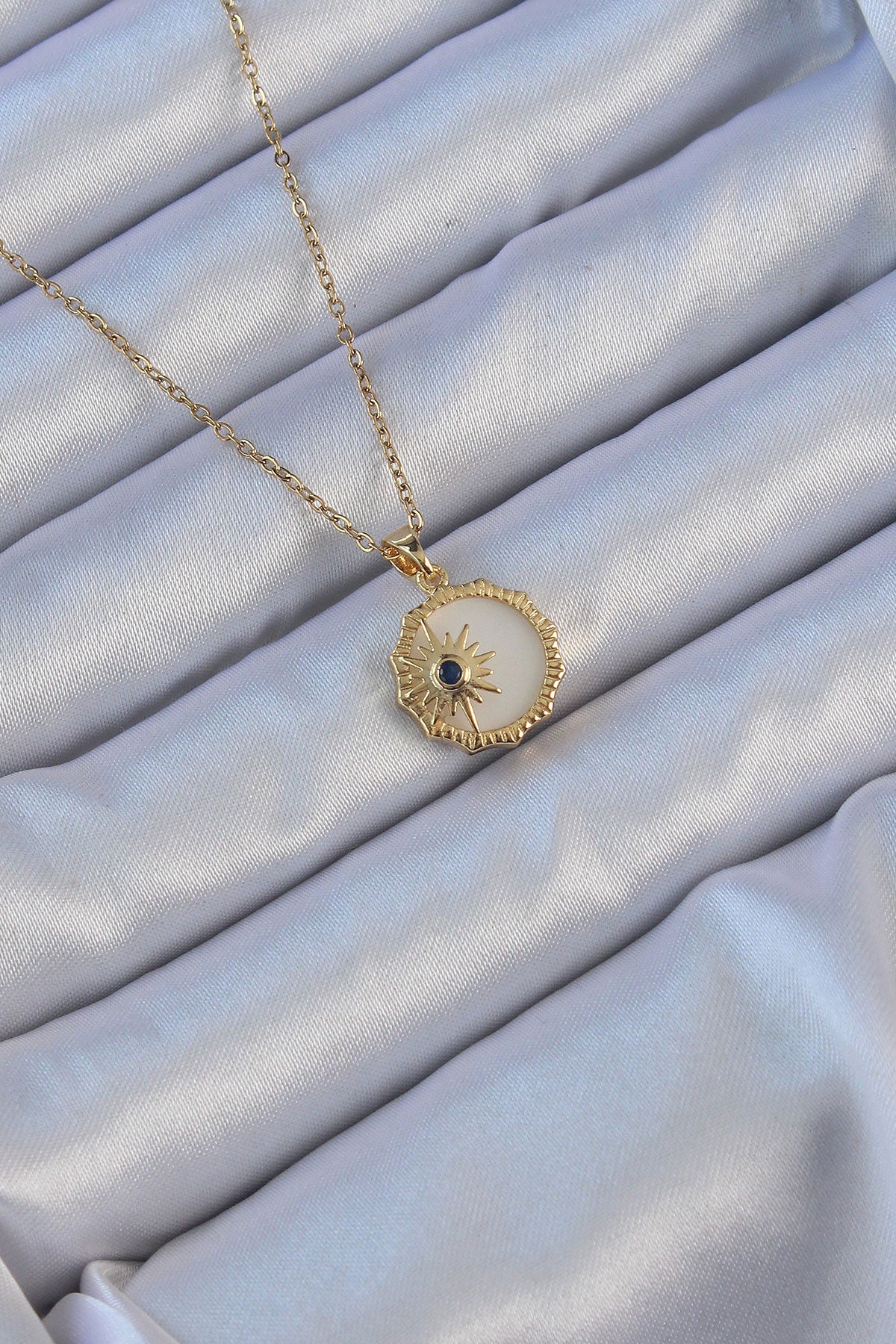 316L Çelik Altın Renk Zirkon Taşlı Mineli Kutup Yıldızı Kolye