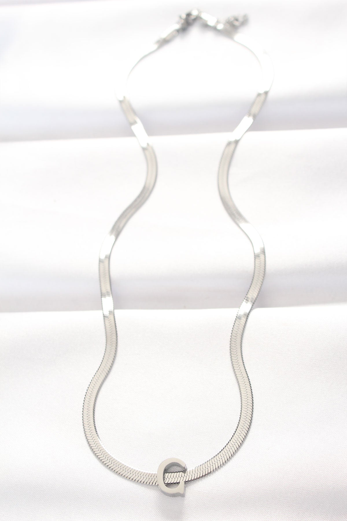 316L Çelik C Harfli Silver Renk İtalyan Zincirli Kolye