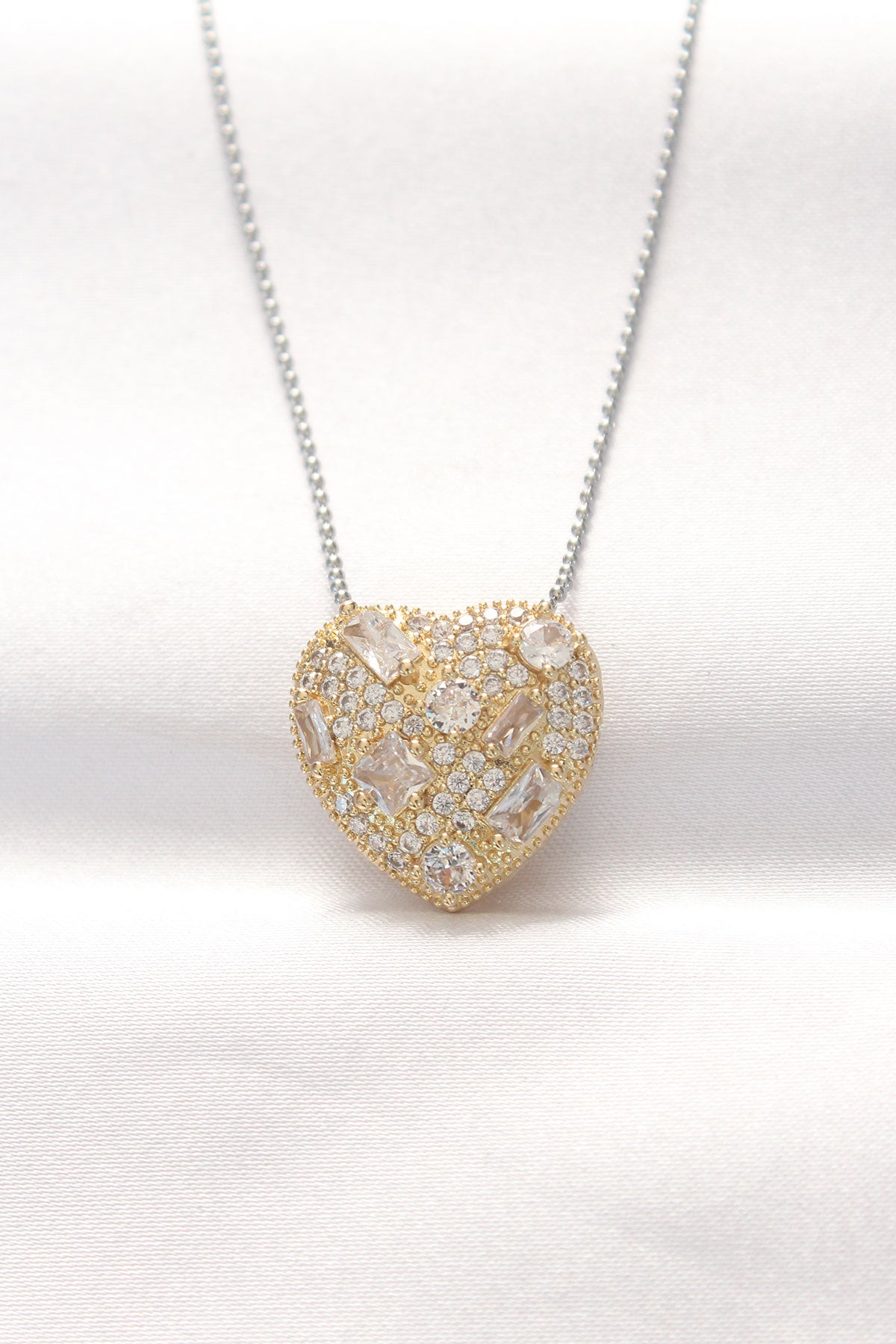 316L Çelik Çift Renk Zirkon Taşlı Kalp Kolye