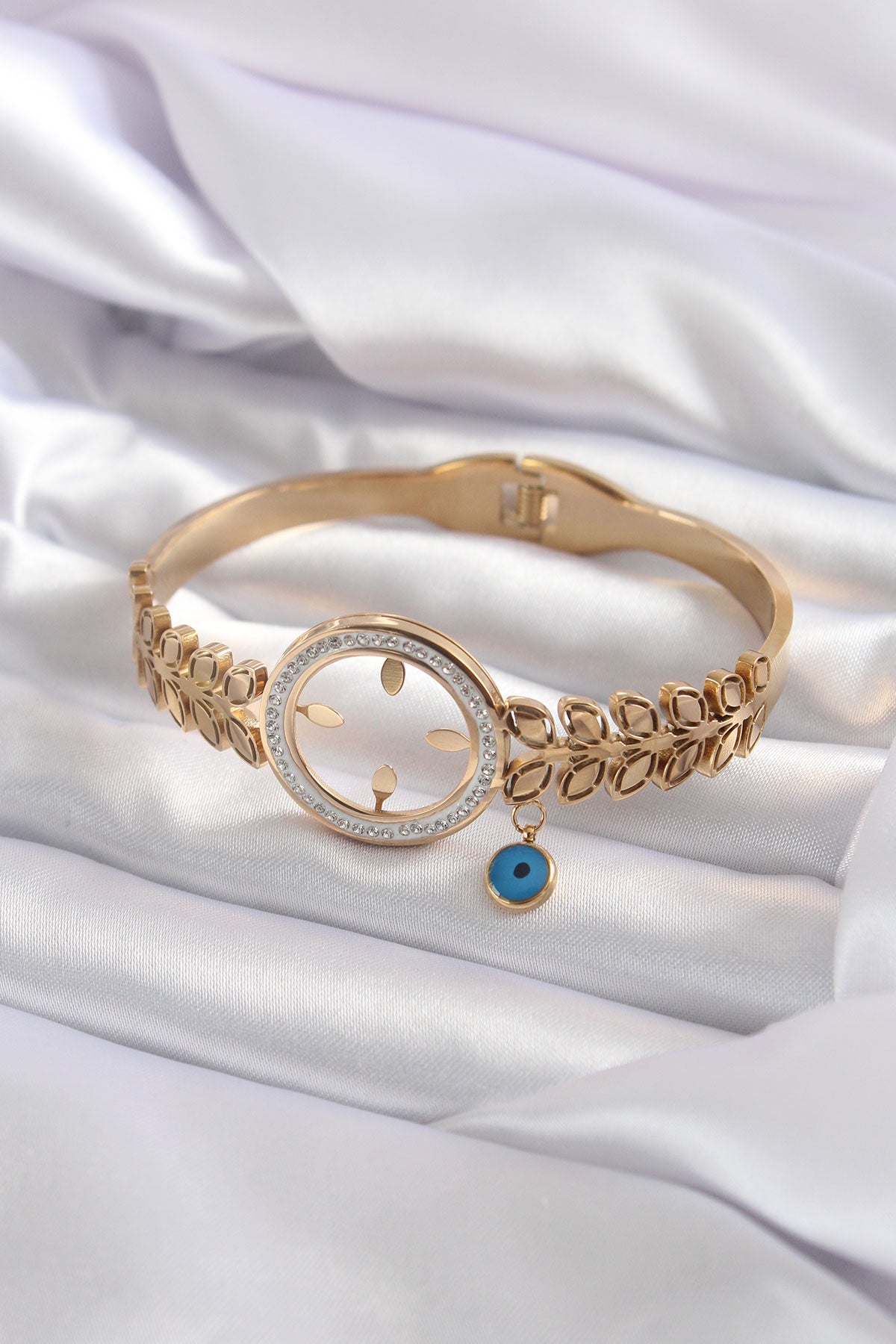 316L Çelik Gold Renk Çeyrek Takılabilen Zirkon Taş Detay Kadın Kelepçe