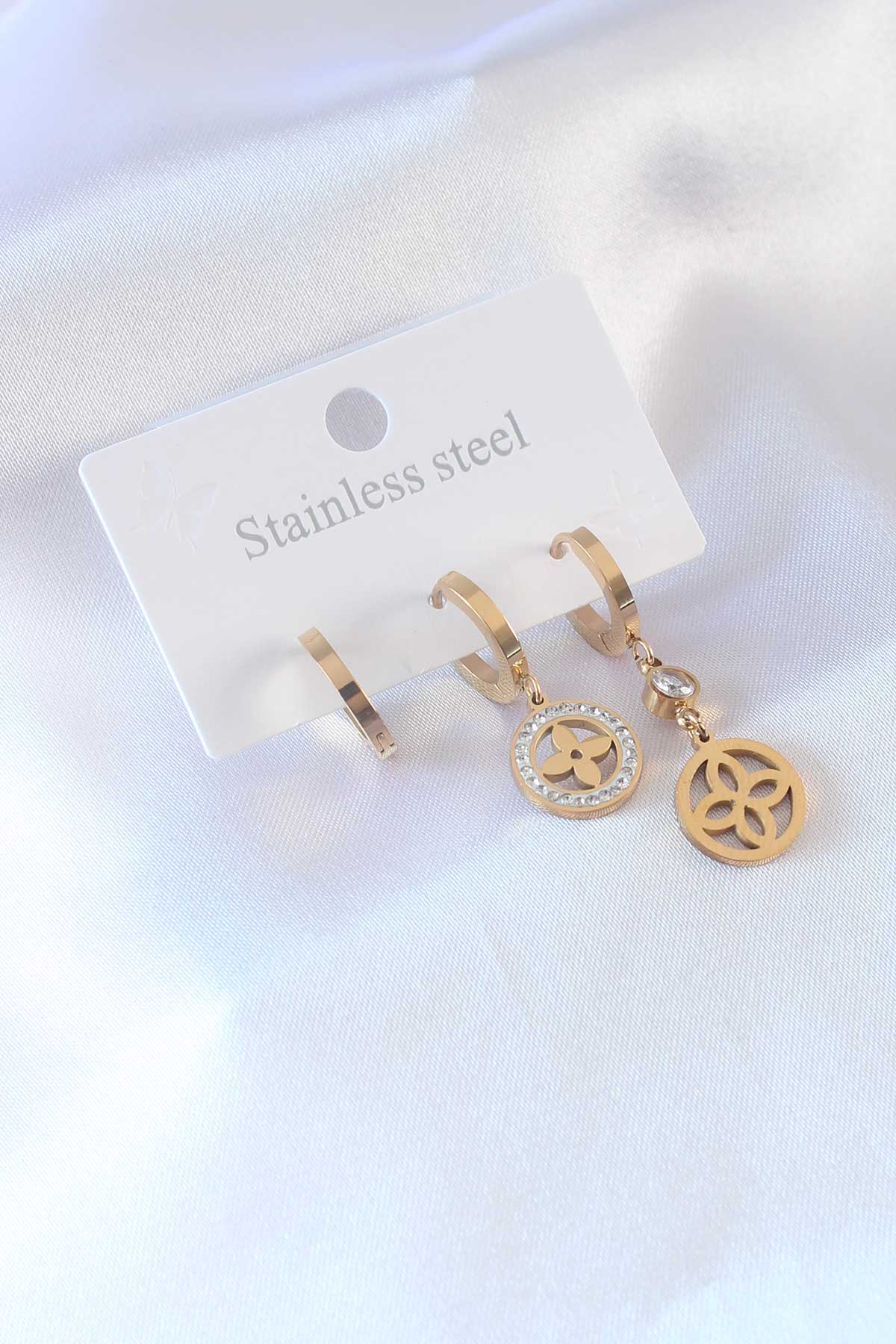 316L Çelik Gold Renk Çiçek Model Zirkon Taşlı Kadın Küpe