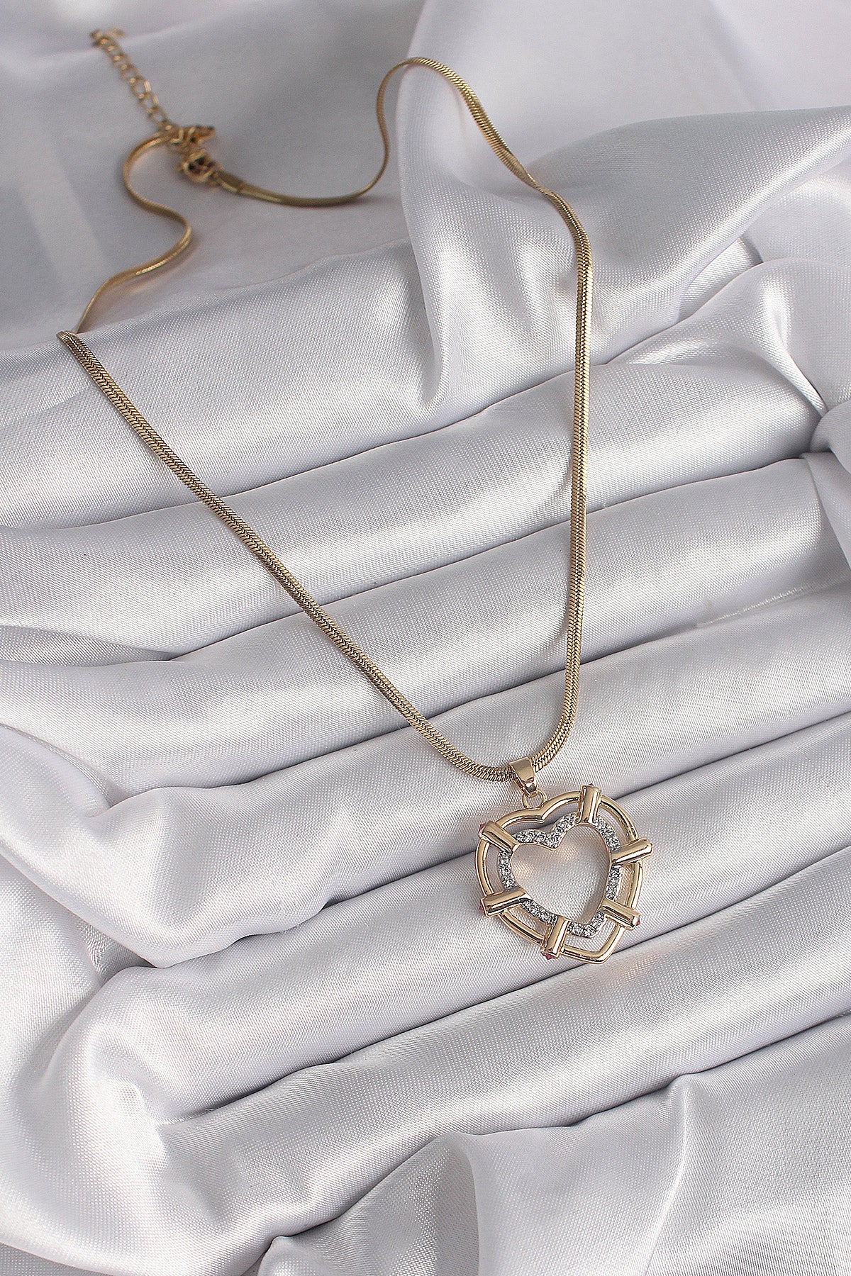 316L Çelik Gold Renk İtalyan Zincir Mix Renk Zirkon Taşlı Kalp Model Kadın Kolye