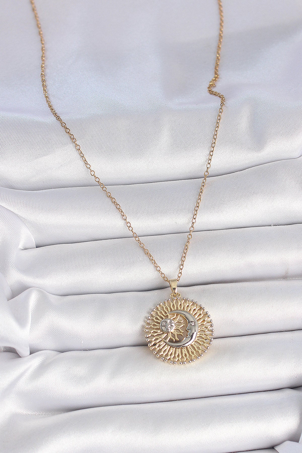 316L Çelik Gold Renk Mix Renk Ay Güneş Model Kadın Kolye