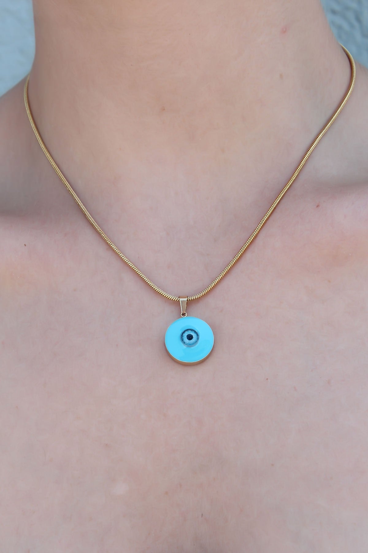 316L Çelik Gold Renk Nazar Boncuk Model Kadın Kolye