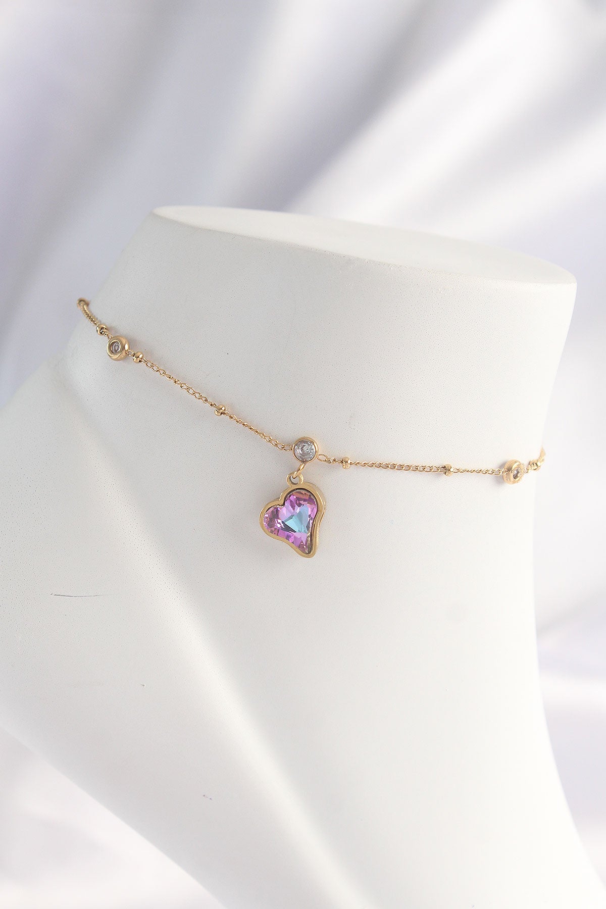 316L Çelik Gold Renk Renkli Zirkon Taşlı Kalp Halhal