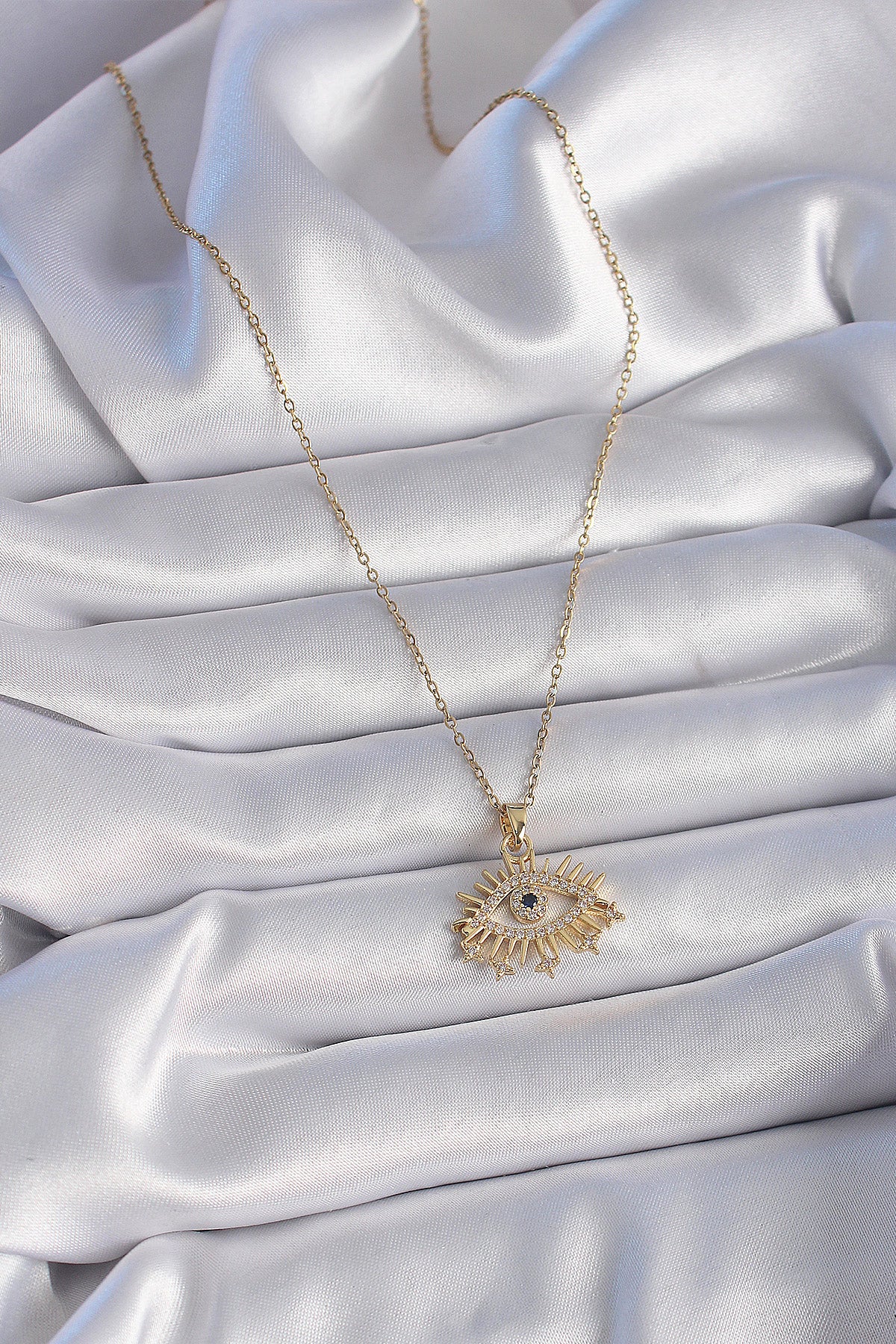 316L Çelik Gold Renk Zincir Zirkon Taşlı Göz Figür Kadın Kolye
