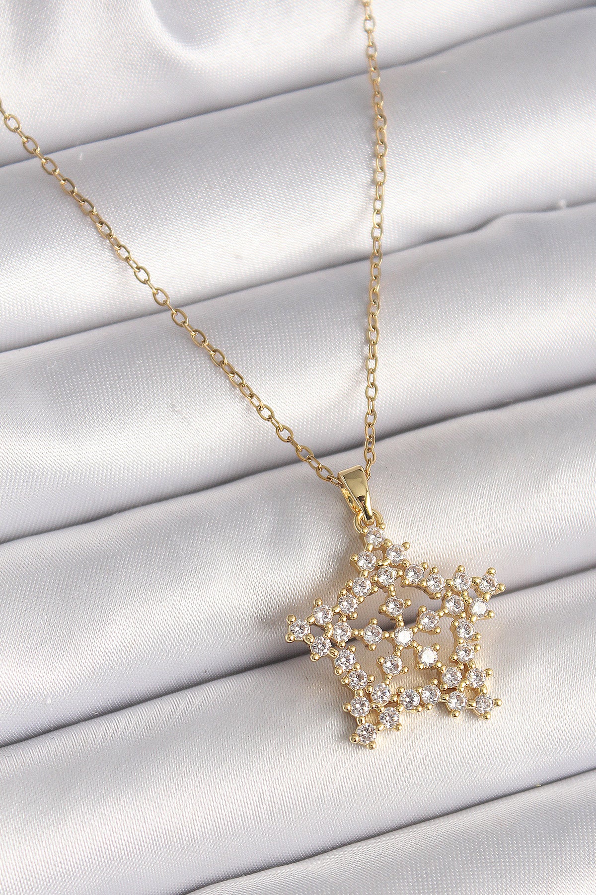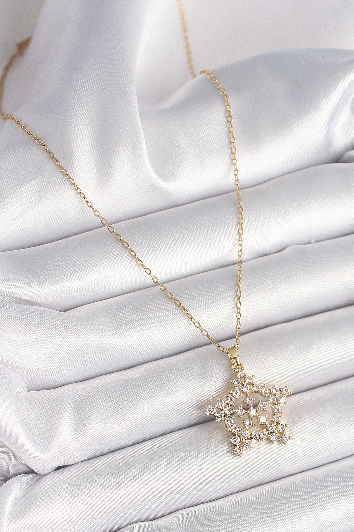 316L Çelik Gold Renk Zincir Zirkon Taşlı Kar Tanesi Model Kadın Kolye