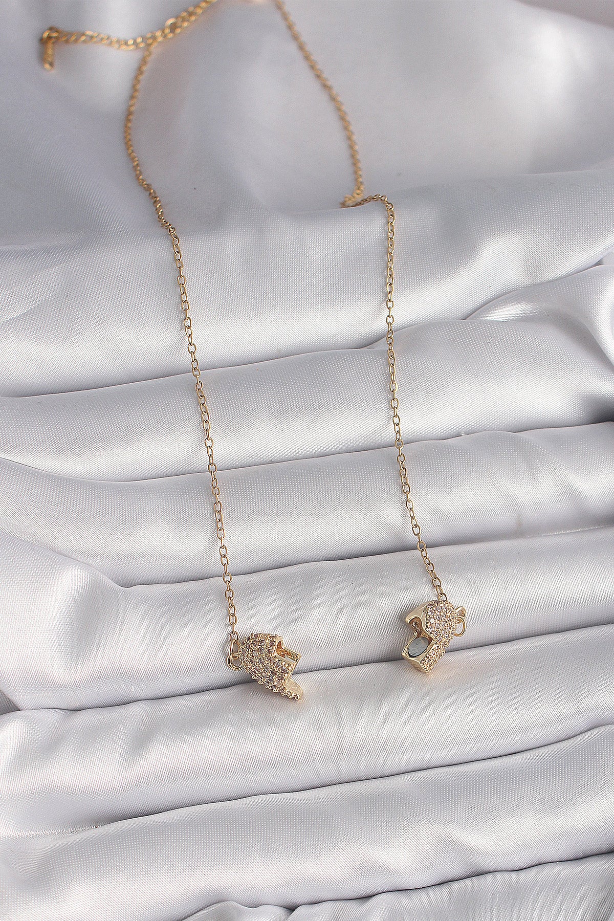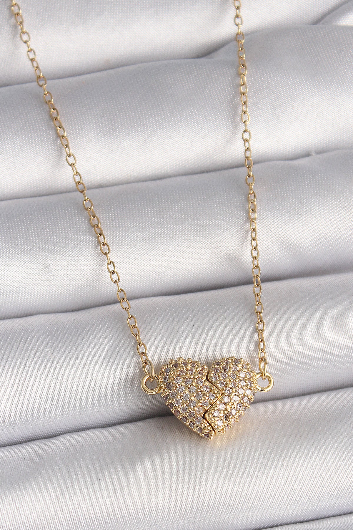 316L Çelik Gold Renk Zincir Zirkon Taşlı Mıknatıslı Kalp Model Kadın Kolye