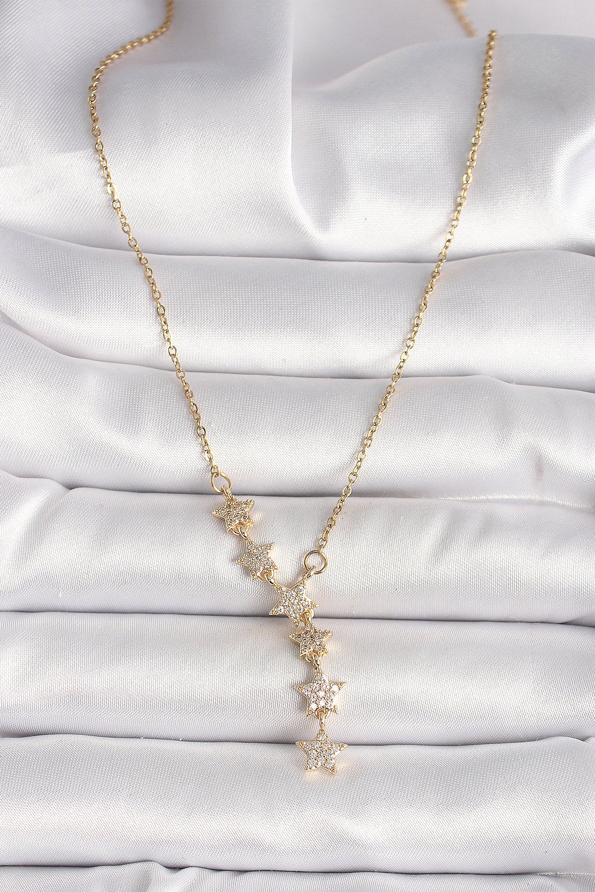 316L Çelik Gold Renk Zincir Zirkon Taşlı Yıldız Model Kadın Kolye