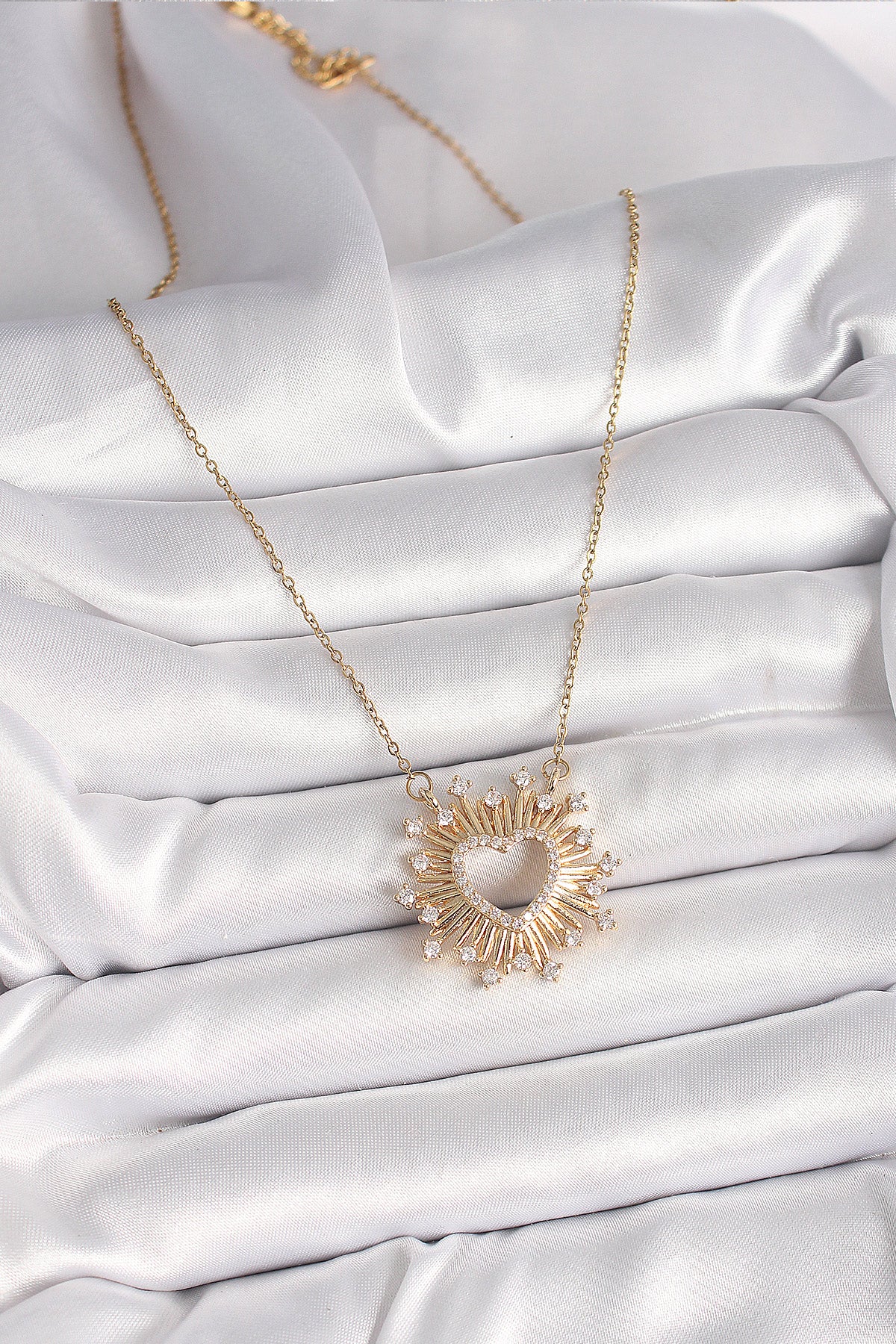 316L Çelik Gold Renk Zirkon Taşlı Kalp Model Kadın Kolye