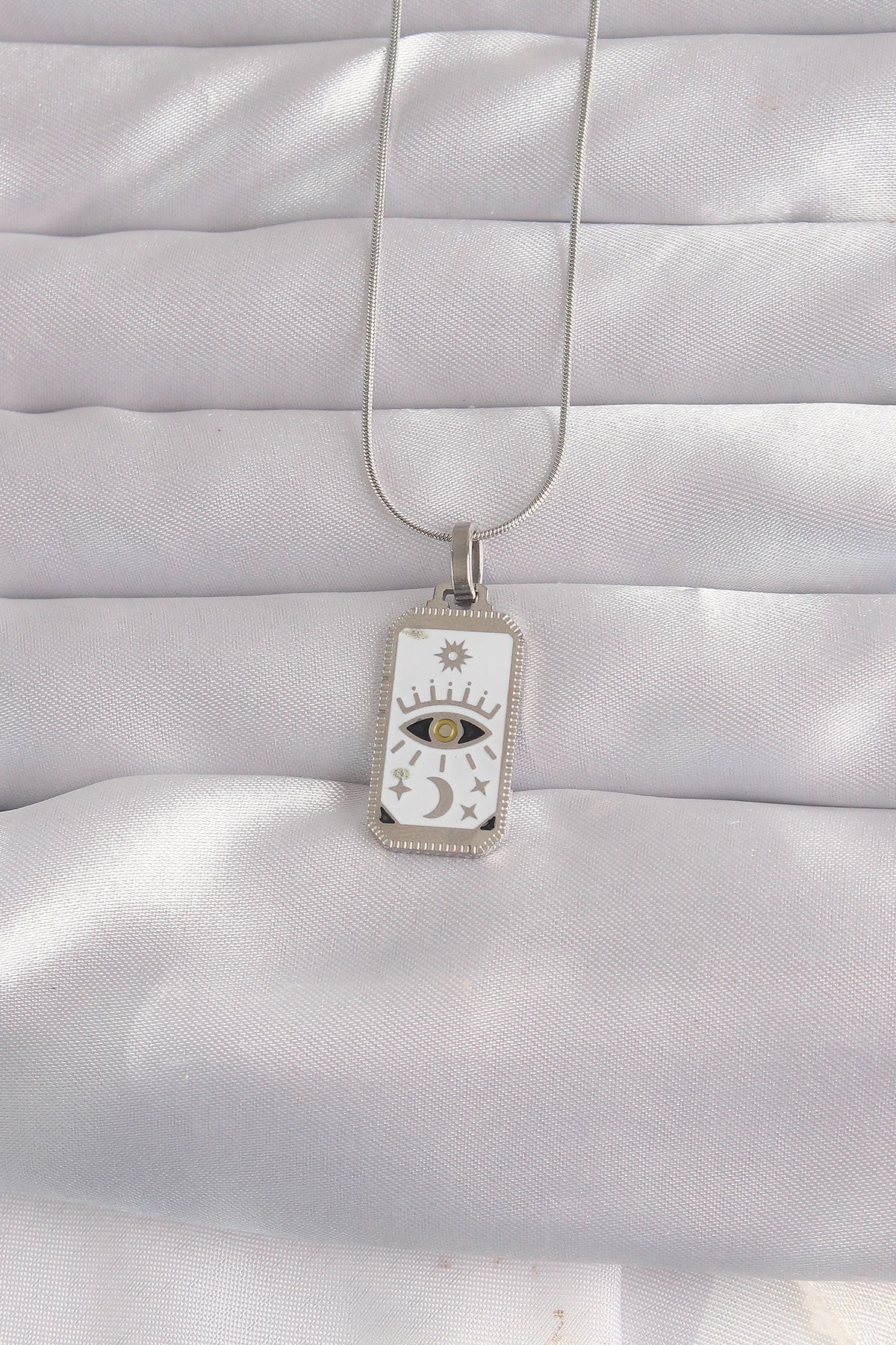 316L Çelik Gümüş Renk Beyaz Mineli Göz Figür Tarot Kolye