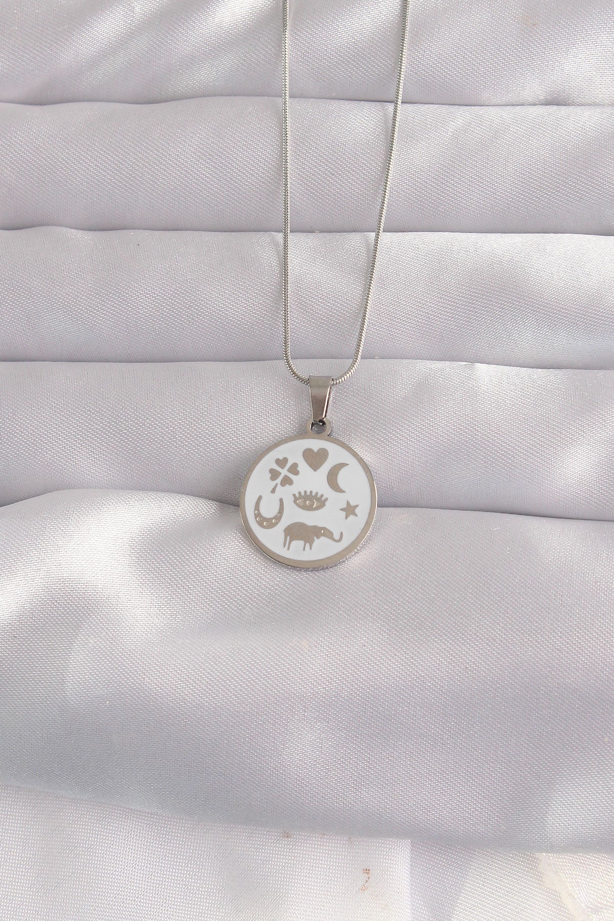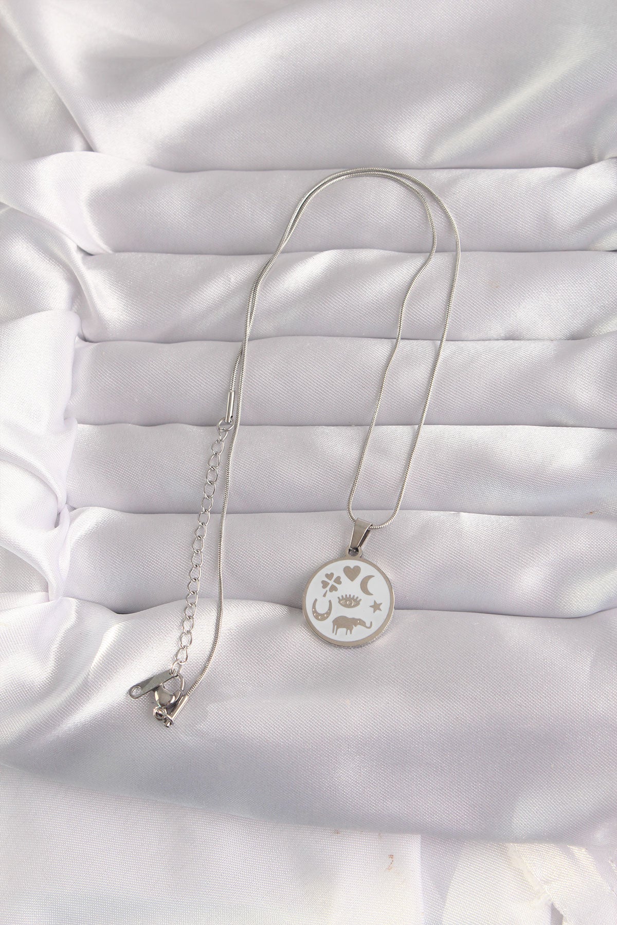316L Çelik Gümüş Renk Beyaz Mineli Karışık Figürlü Tarot Kolye