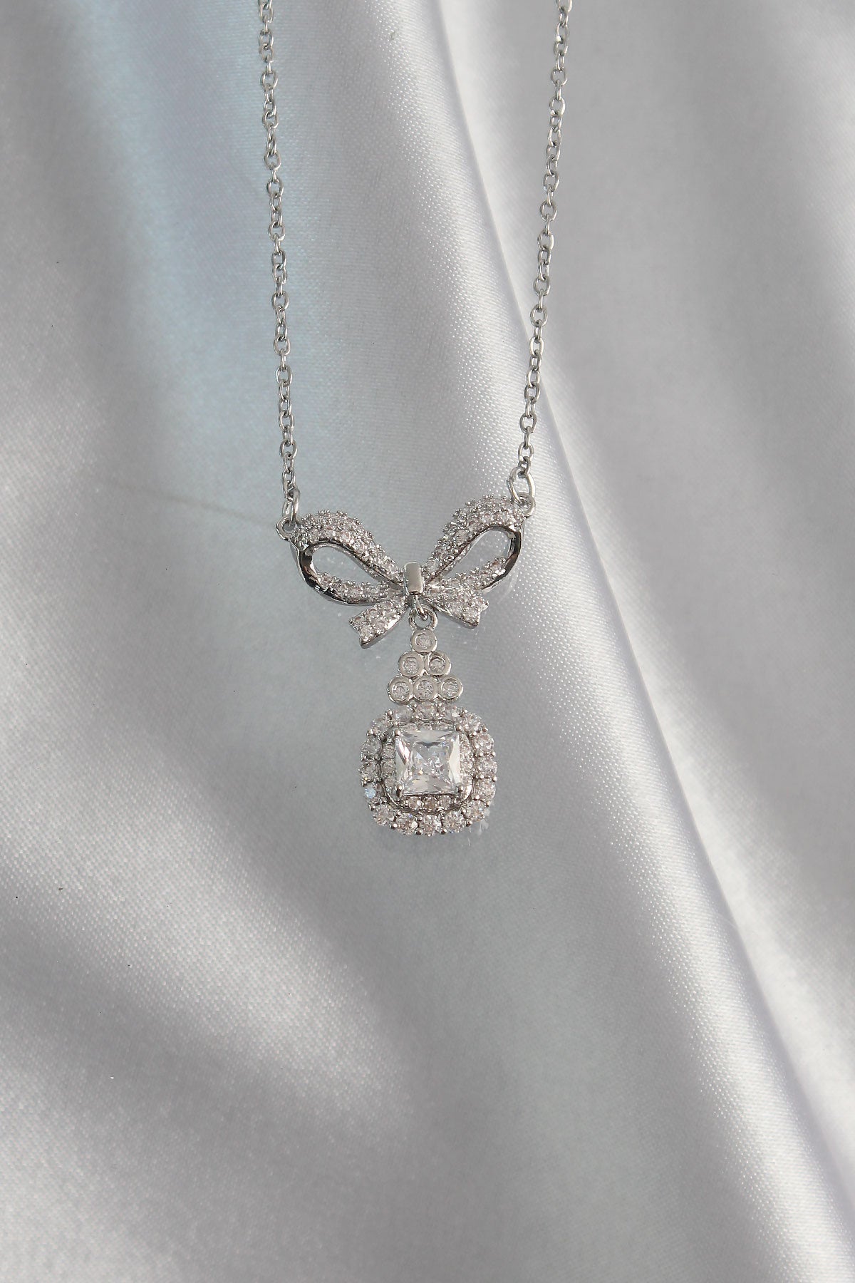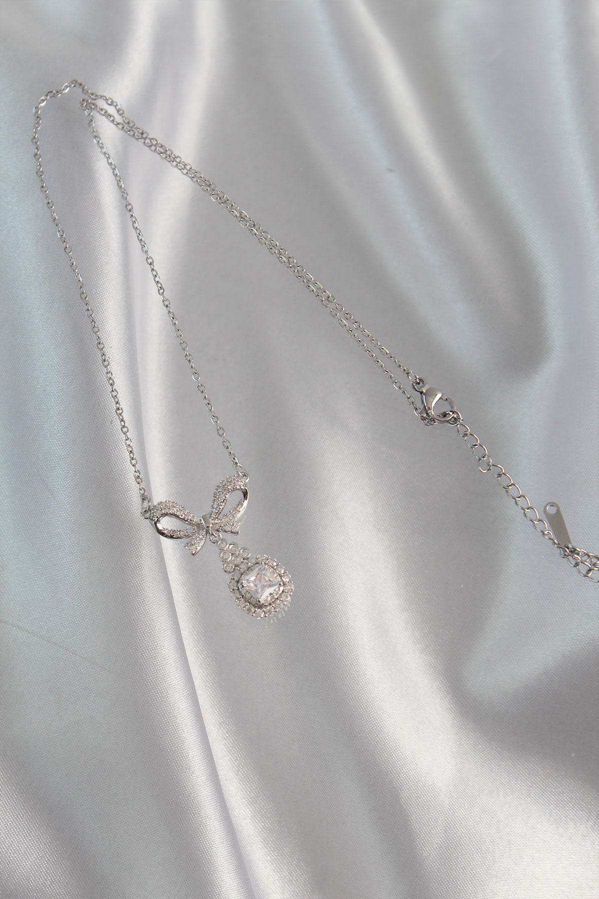 316L Çelik Gümüş Renk Fiyonk Detay Zirkon Taşlı Tektaş Kolye
