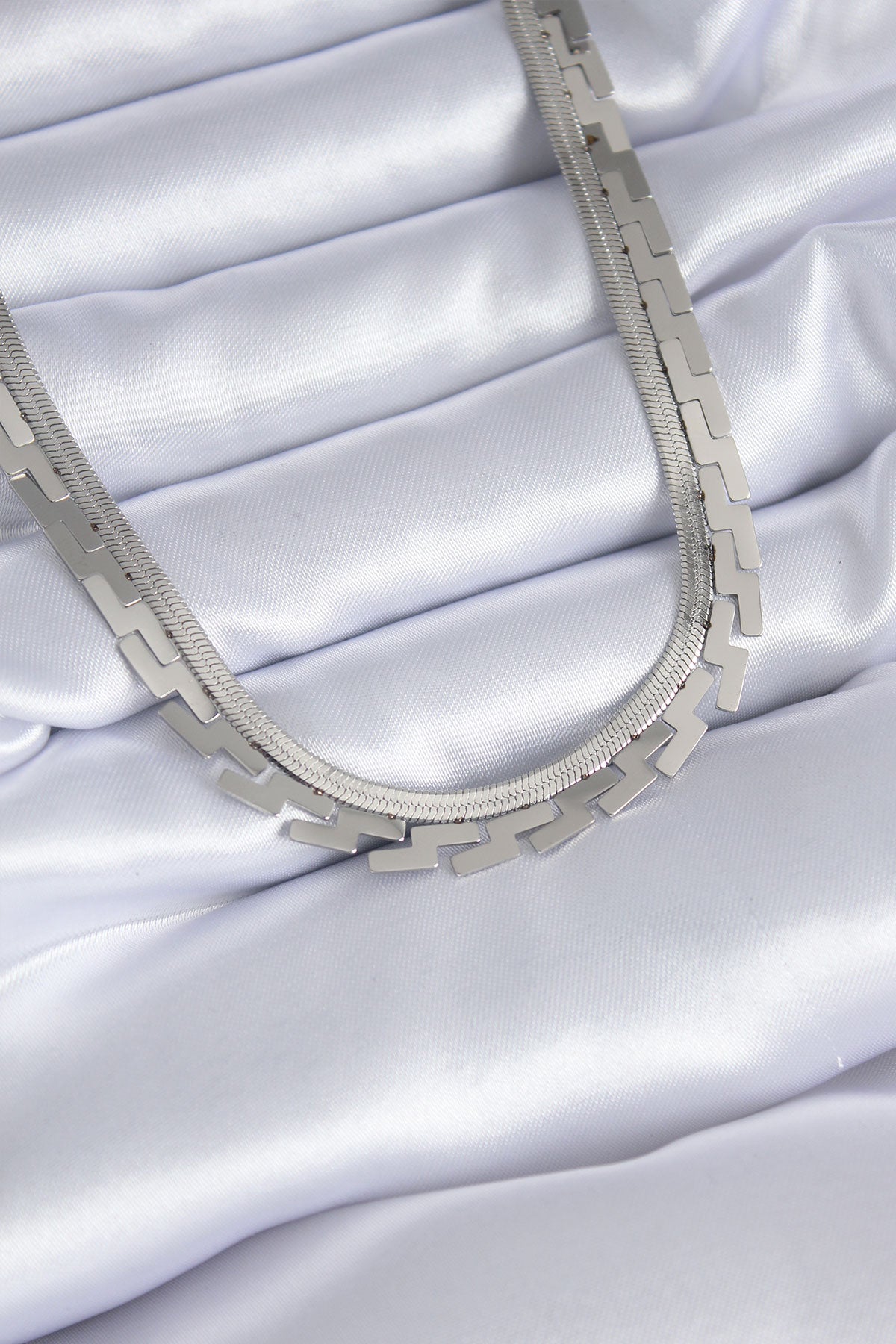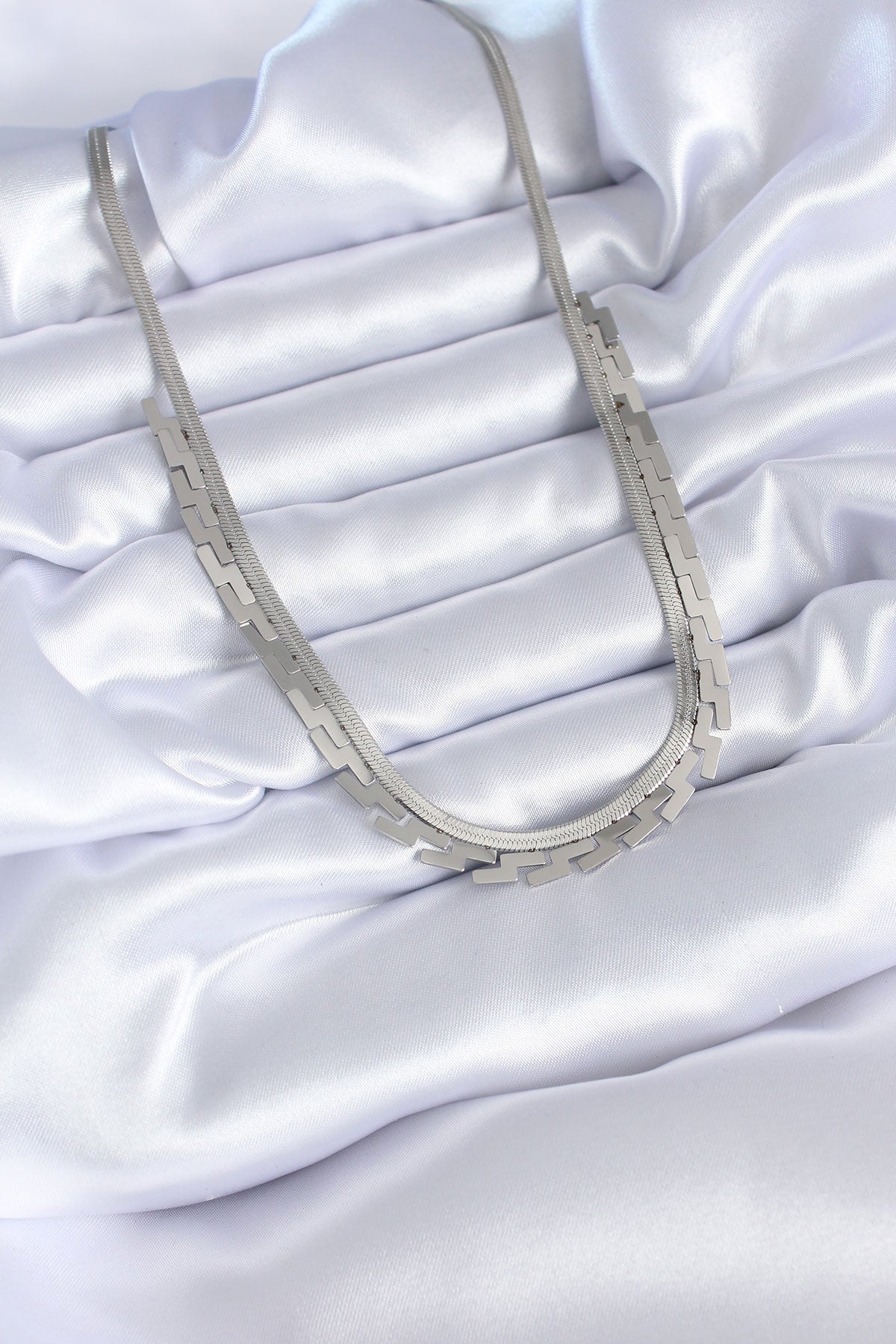 316L Çelik Gümüş Renk İtalyan Zincir Labirent Model Kadın Kolye
