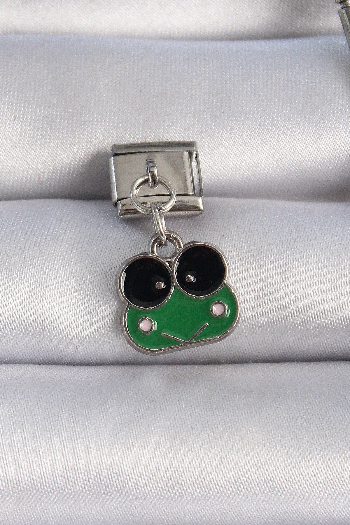 316L Çelik Gümüş Renk Sallantılı Yeşil Kurbağa Figür Nomination Charm