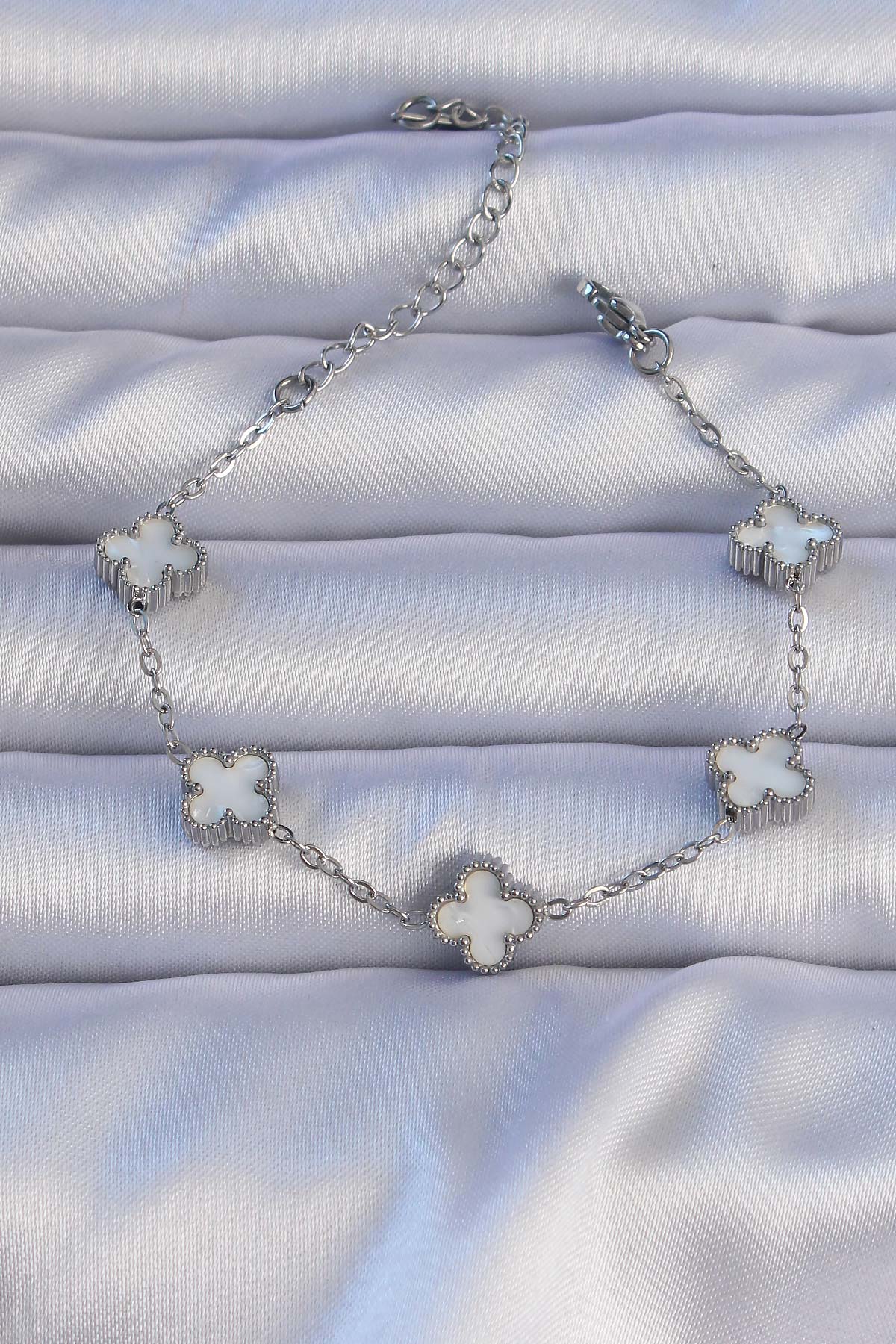 316L Çelik Gümüş Renk Sedefli Baby Boy Yonca Model Bileklik