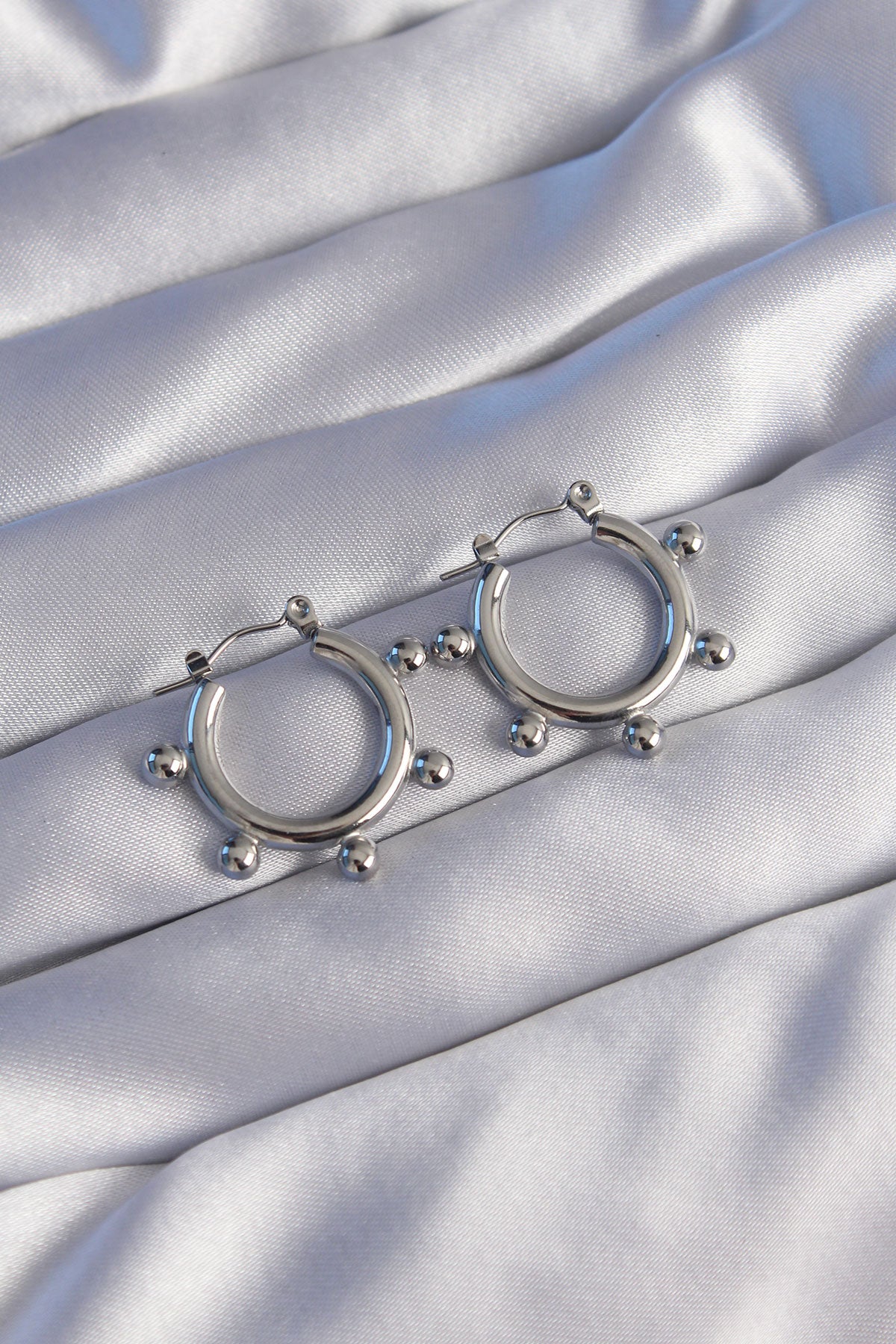 316L Çelik Gümüş Renk Topçuk Tasarımlı Oval Küpe