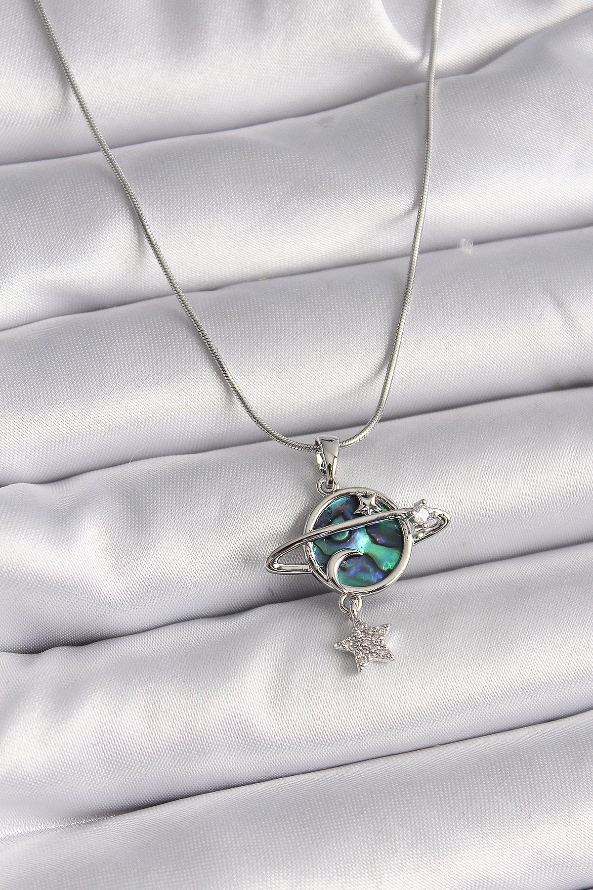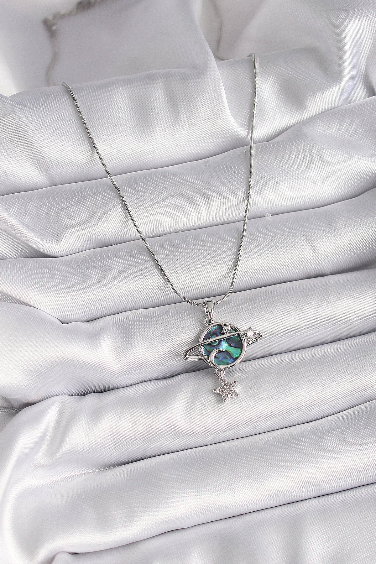 316L Çelik Gümüş Renk Zincir Zirkon Taşlı Gezegen Model Kadın Kolye