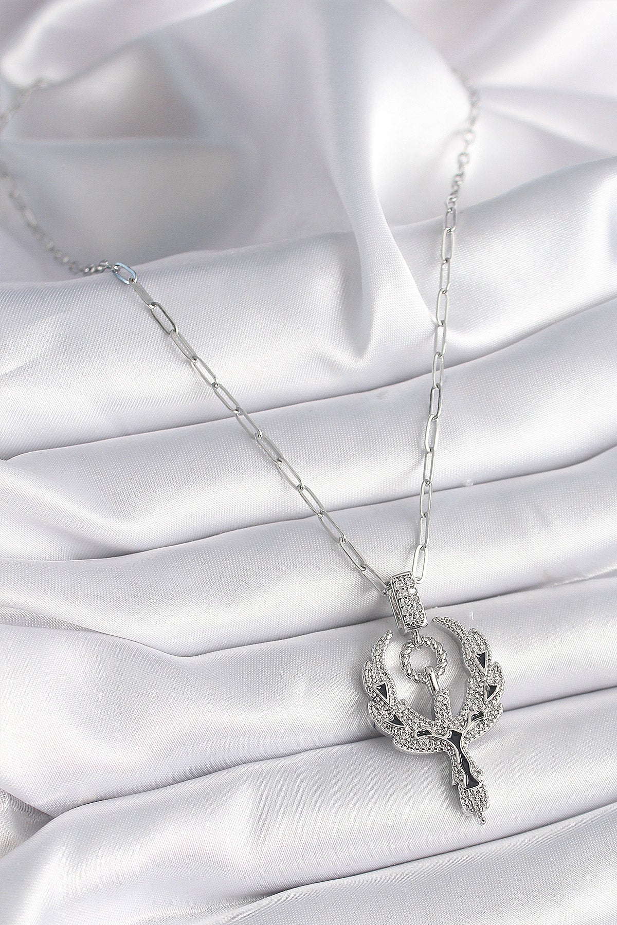 316L Çelik Gümüş Renk Zirkon Taşlı Anka Kuşu Model Kadın Kolye