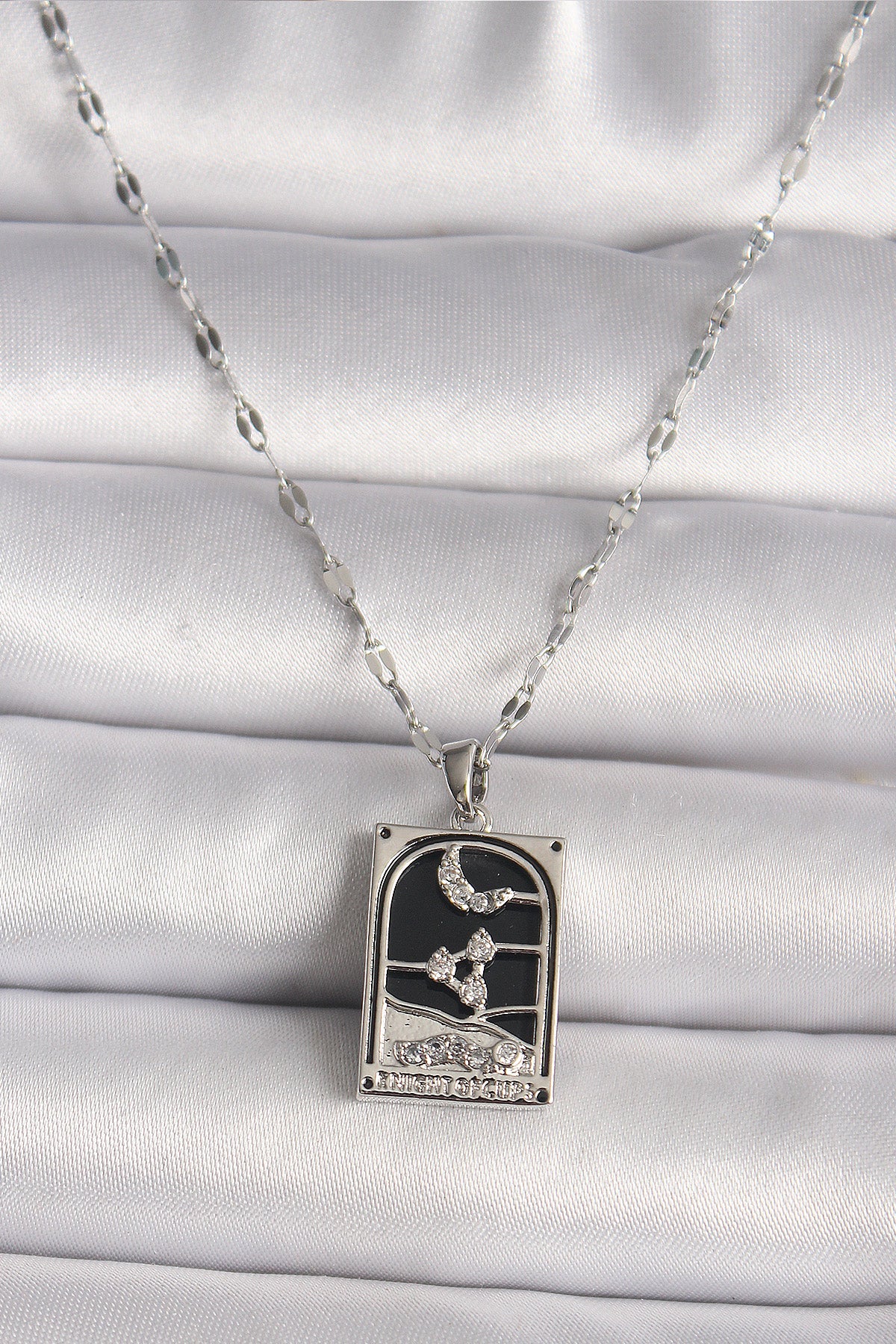 316L Çelik Gümüş Renk Zirkon Taşlı Ay Figürlü Taror Model Kadın Kolye