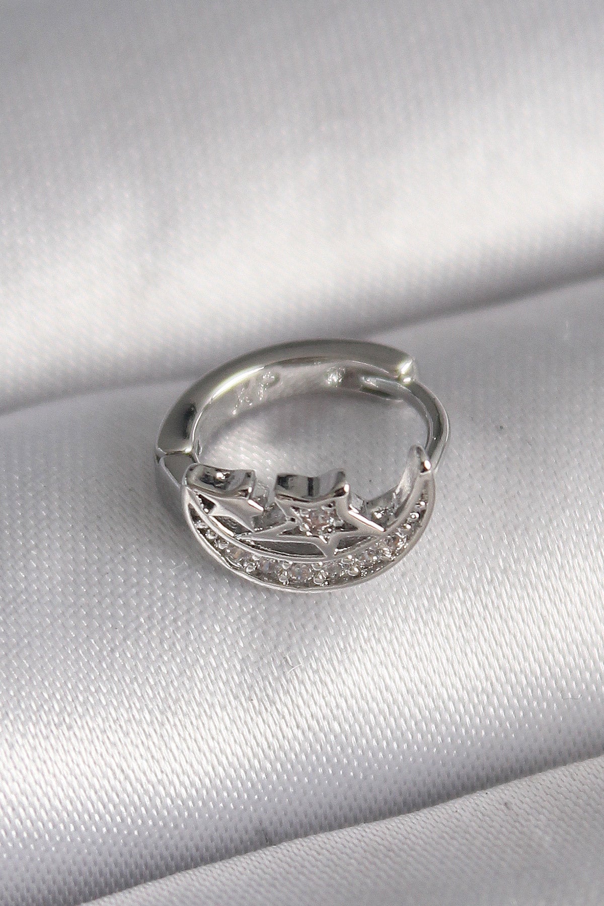 316L Çelik Gümüş Renk Zirkon Taşlı Ay Yıldız Model Tragus Piercing