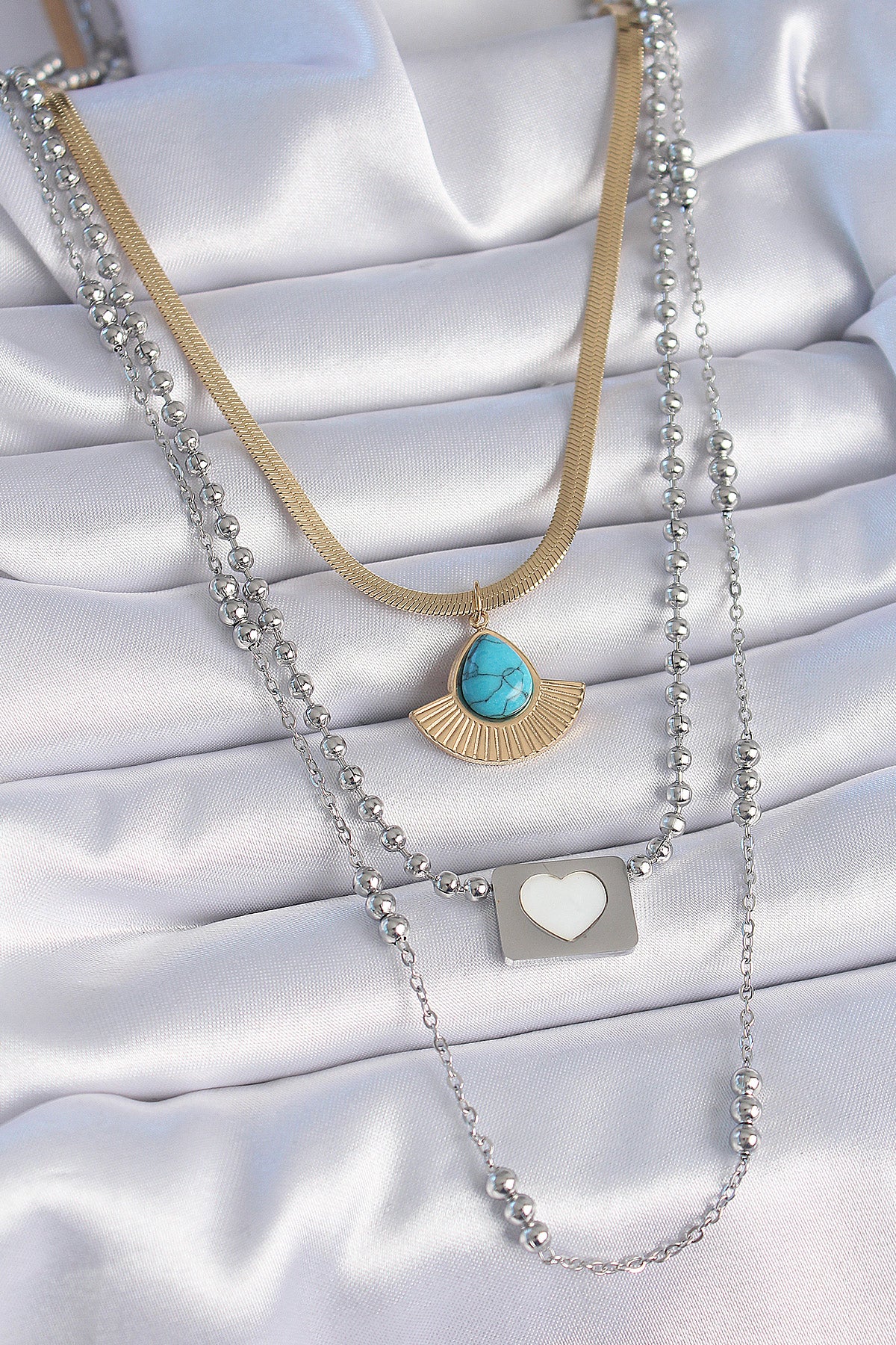 316L Çelik Mix Renk 3'lü Zincir Damla Madalyon Figür Uzun Kadın Kolye