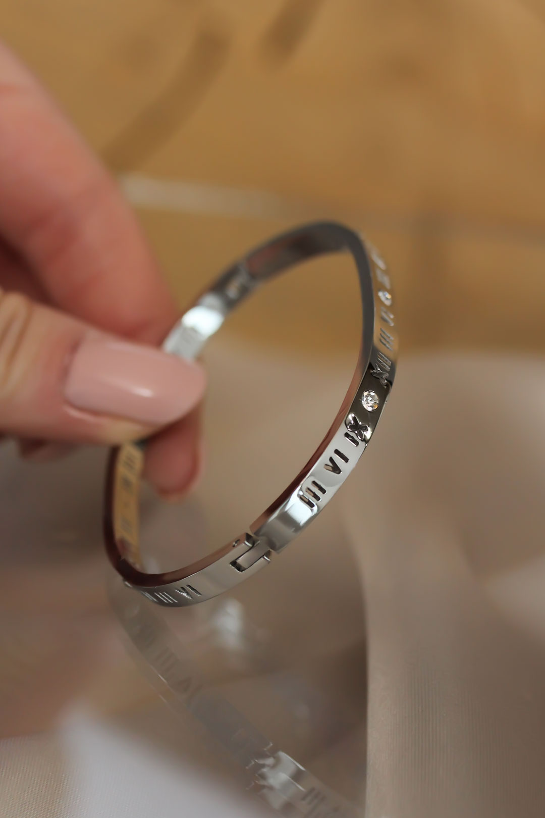 316L Çelik Roma Rakamlı Silver Renk Bilezik Kelepçe