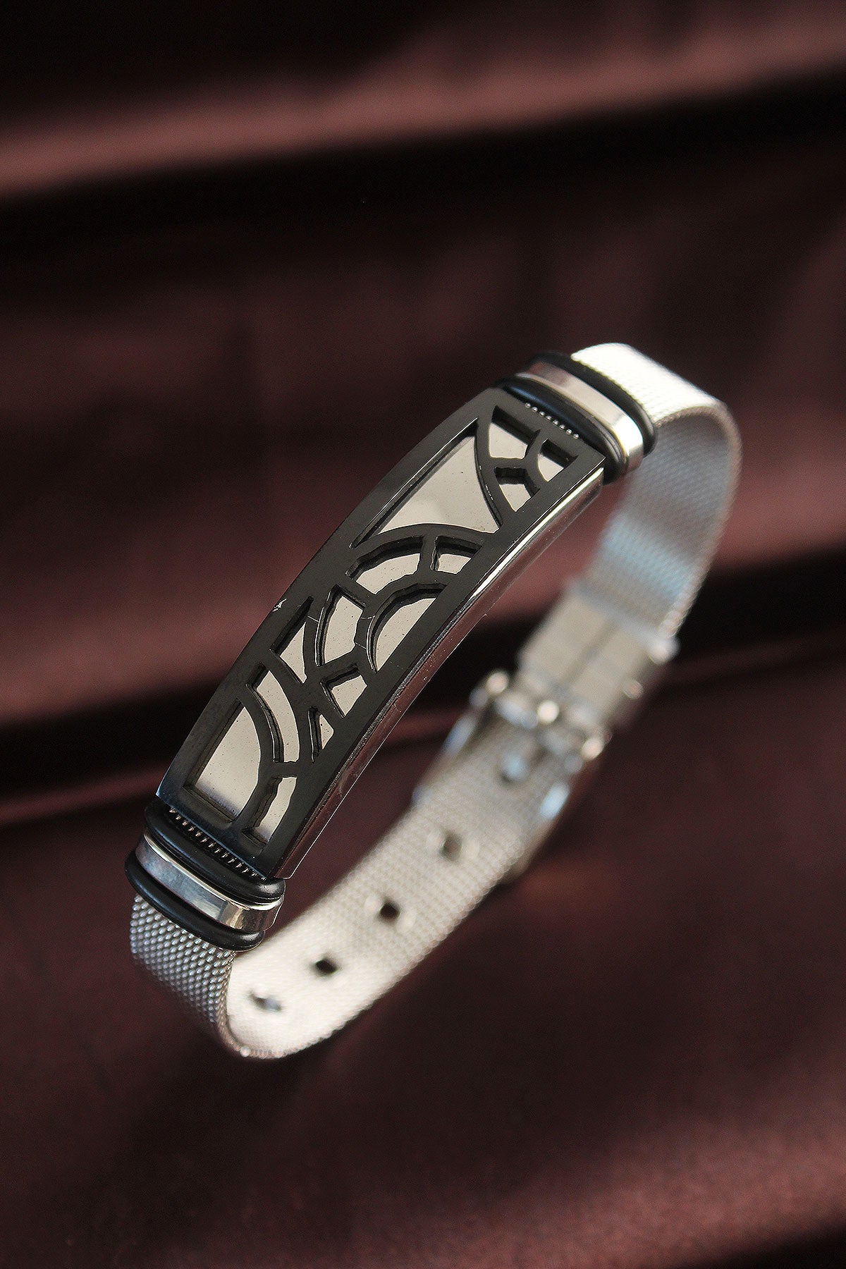 316L Çelik Siyah Desenli Ayarlanabilir Hasır Kordonlu Bileklik