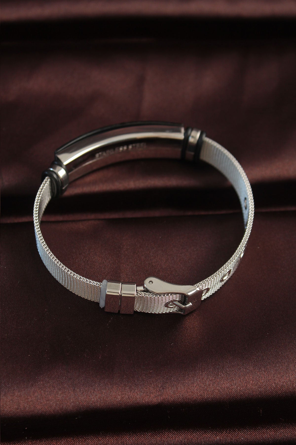 316L Çelik Siyah Desenli Oval Figür Ayarlanabilir Hasır Kordonlu Bileklik
